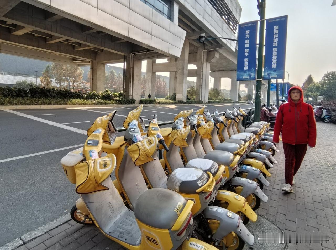 没想到,我们常州地铁一号线终点站这里,还有很多扫码了随时可以开走的电动车呢!
