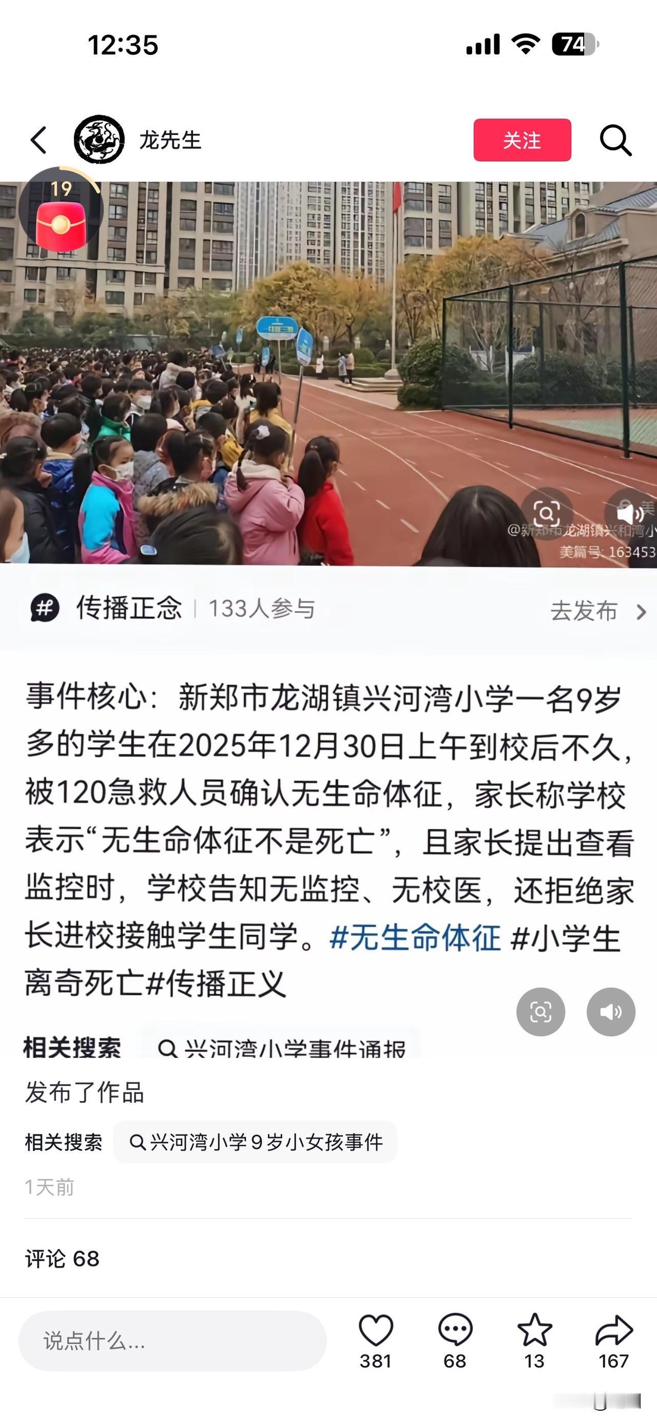 近期小编发现新郑市龙湖一小学,4年级学生去上课后不久,被120拉走死亡。但截止现在,校方表示:无监控、无校医、还拒绝家长进入学校接触学生同学。进行报警,针对此事,大家怎么看?郑州新郑市一小学食堂被曝果蔬发霉 多部门介入调查