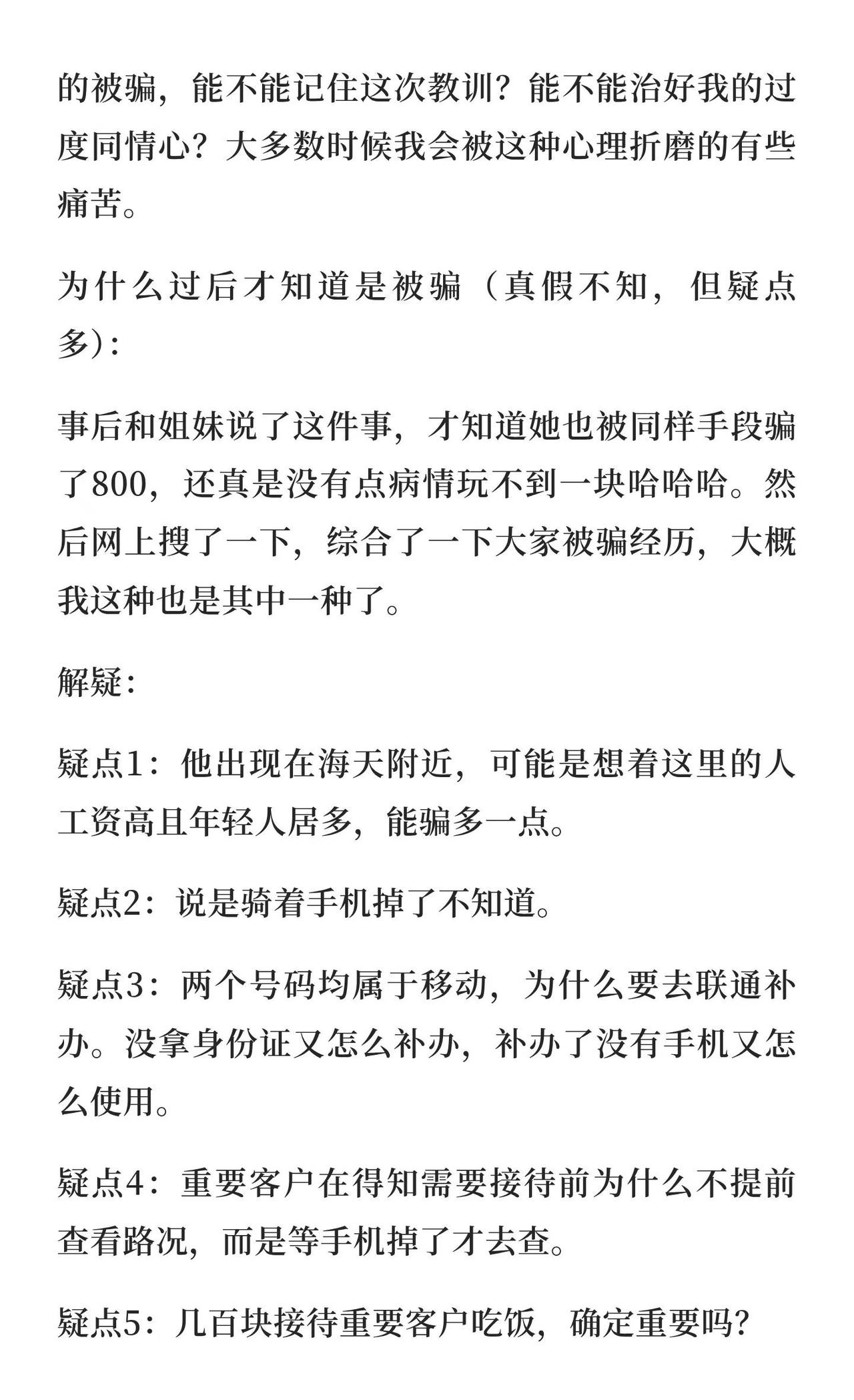 高明又来新诈骗了,有同情心的人容易中招( 现在主包的心情是又笑又蠢,又庆幸通过此事得了教训,花400得到了以后不会再信需要借钱的熟人和陌生人的教训,以后不帮助别人或许我不会有愧疚心理了。有些亏又有些不亏[捂脸][捂脸][捂脸][捂脸]提高警惕防骗 增强防范意识谨防上当受骗