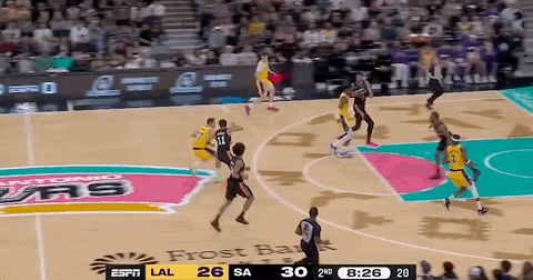 马刺暂停!只差一分湖人29-30马刺拉拉维亚三分投进!湖人vs马刺
