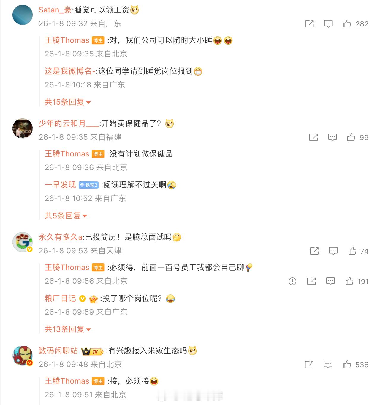王腾离开小米后成立了一家叫「今日宜休」的公司,目标是通过研发睡眠健康相关的产品。团队核心成员主要来自小米、华为等头部科技大厂。有人问王腾产品是否会接入米家,王腾:接,必须接。大家觉得王腾的创业能成功吗?42how新能源汽车王腾回应是否接入米家