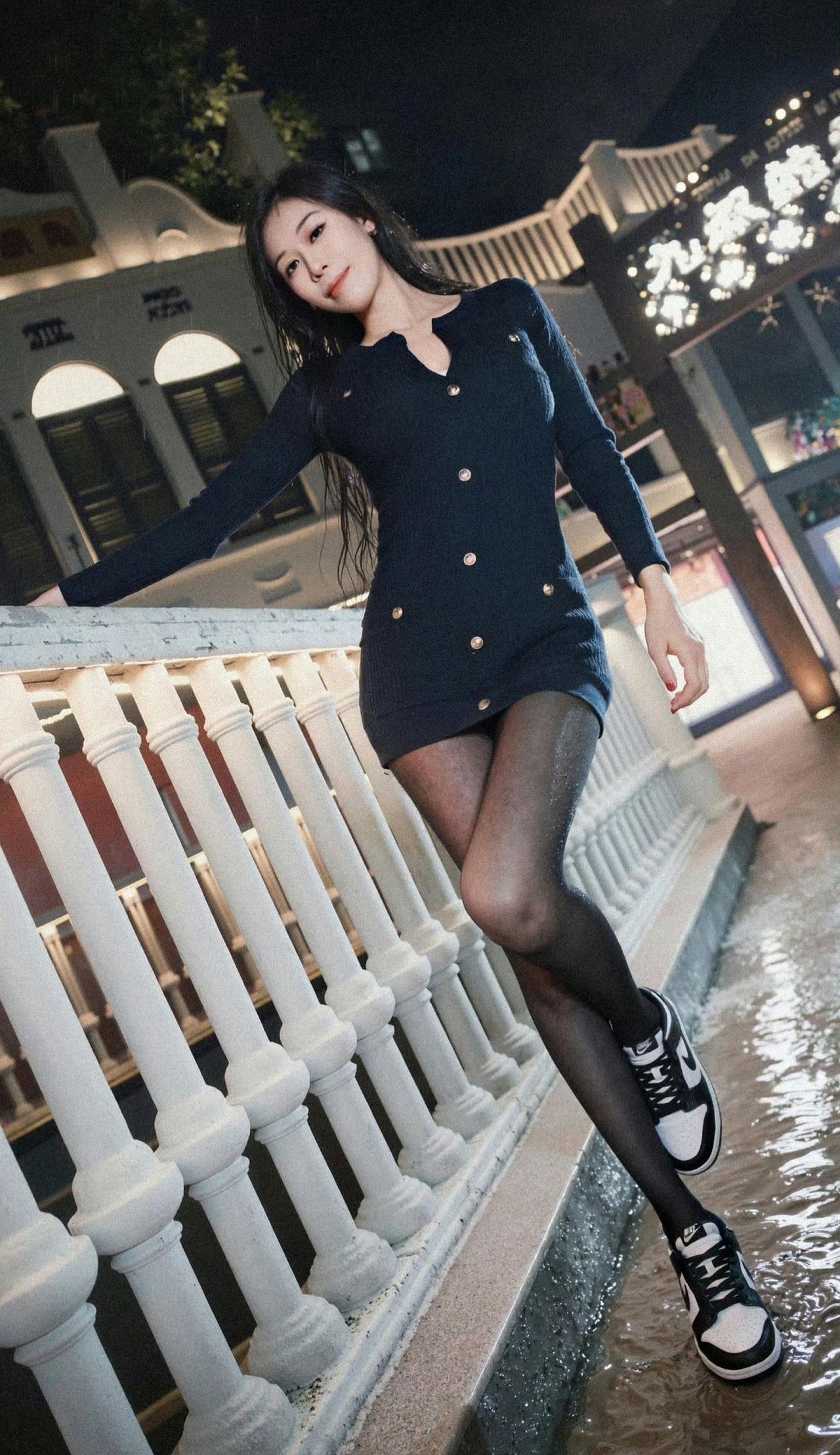这套穿搭是酷飒甜美的黑调轻熟风,黑色金属扣连衣裙自带酷飒感,修身短款版型凸显身形,金属装饰注入轻奢细节。 搭配黑白运动鞋注入休闲活力,中和了连衣裙的成熟感,让造型更显松弛;简约饰品点缀,让暗黑系穿搭更有层次,充分展现穿着者酷飒甜美的轻熟魅力。绝美黑裙穿搭 简约黑裙穿搭 高级感黑色裙子 减龄少女感时尚穿搭分享