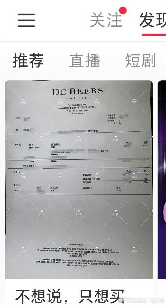 檀健次粉丝在戴比尔斯评论区晒单中檀健次刘一诺 已分手