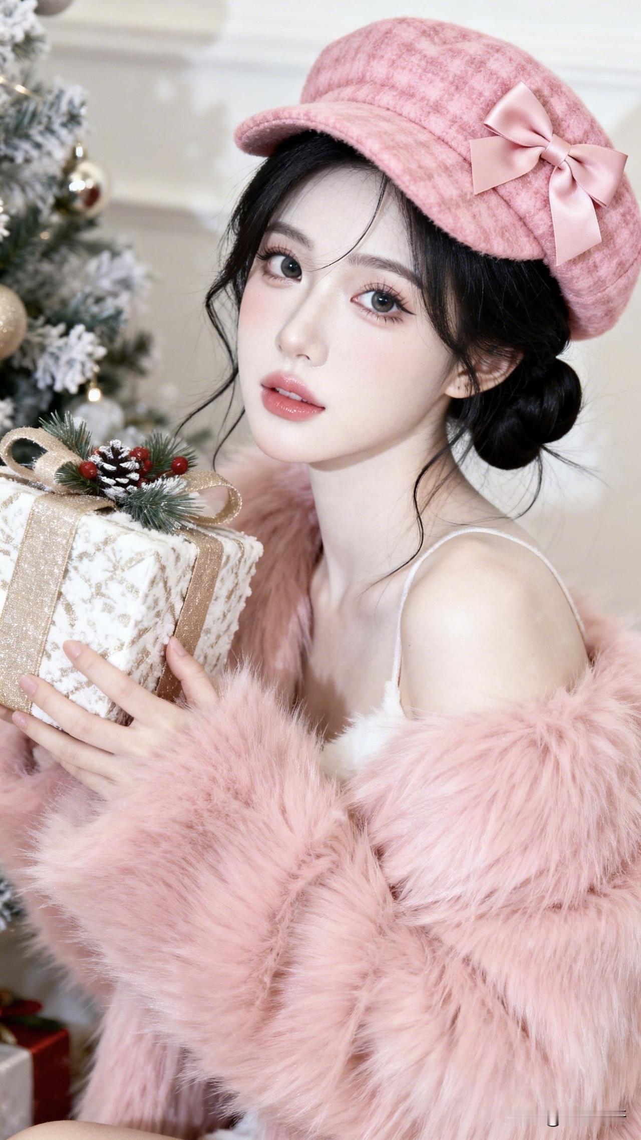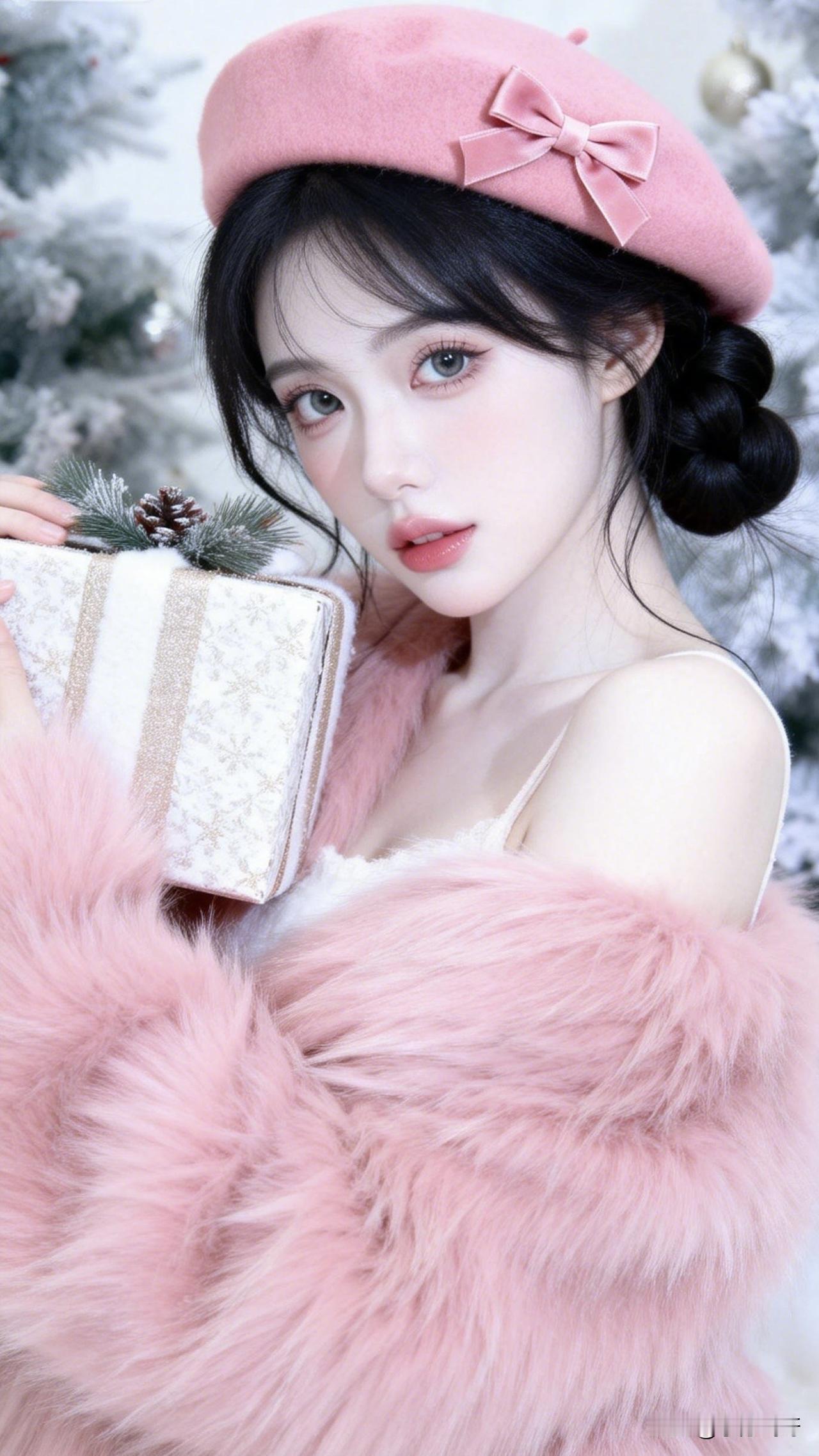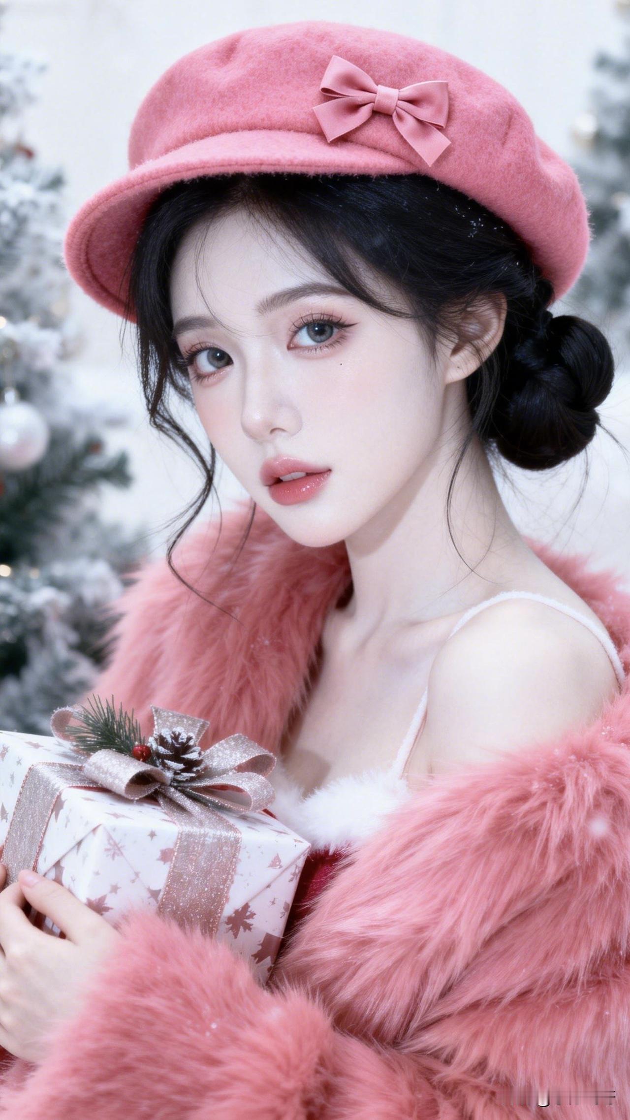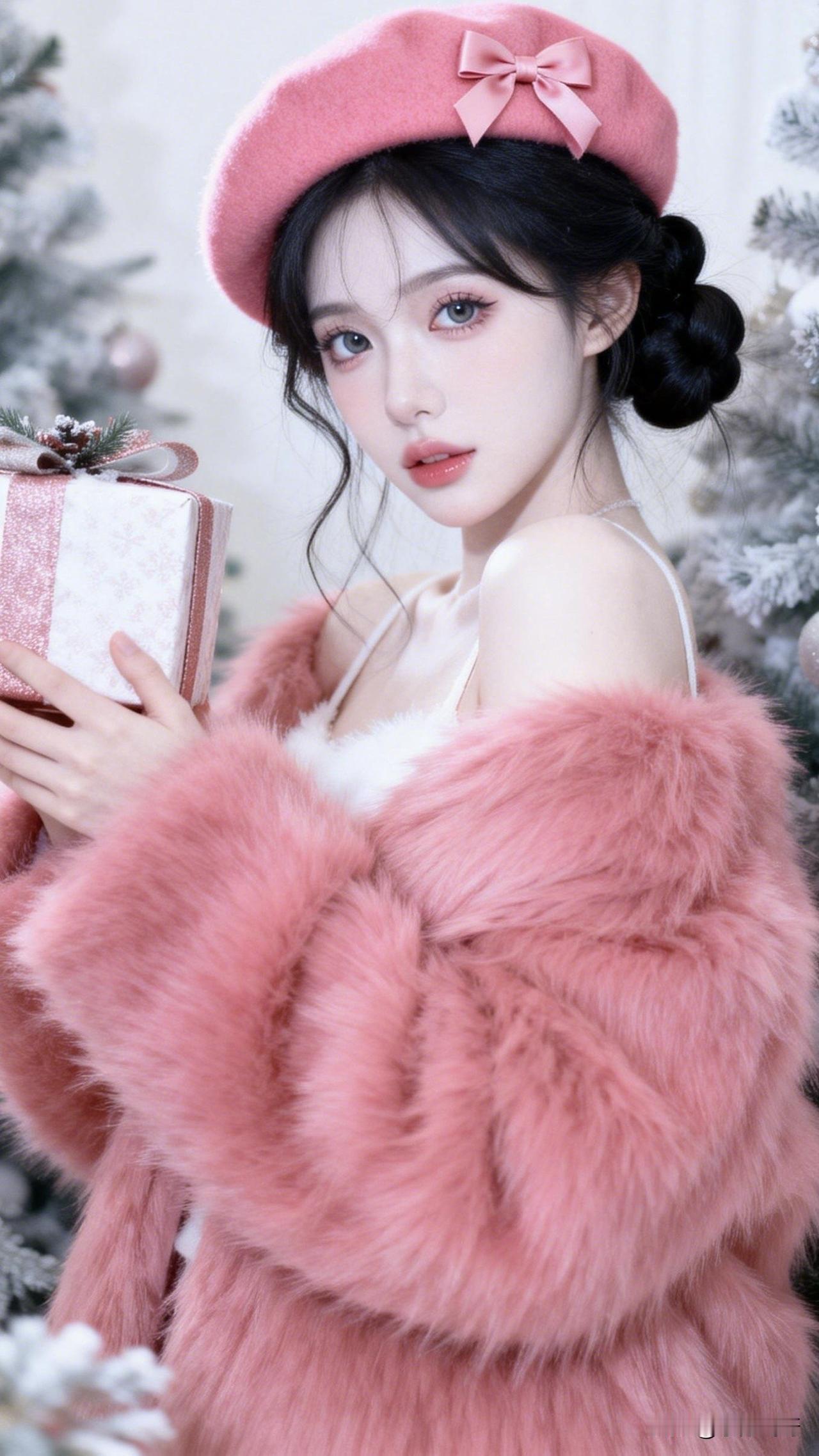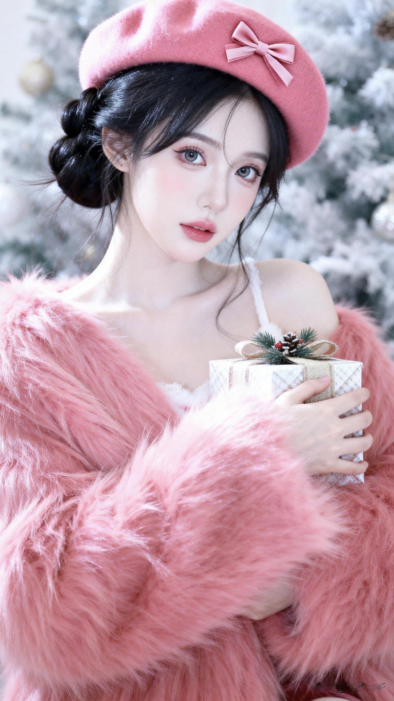 :粉色浪漫映雪礼,佳人有约不请自来。主题就叫“你的礼物”吧[可爱]!