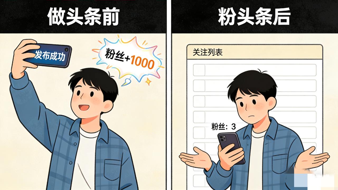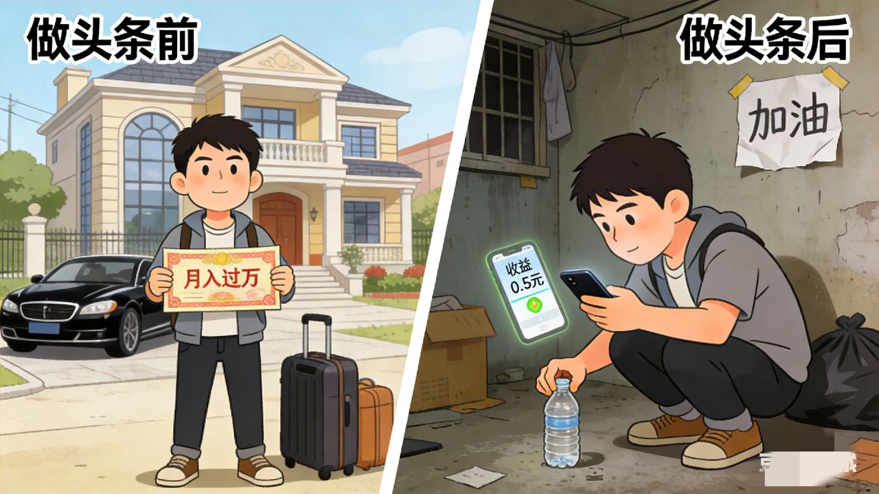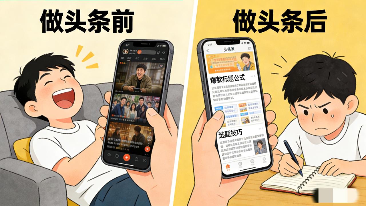 做头条前VS做头条后 做头条前,我以为只要写了就有收益 做头条后,你写了80篇、100篇也不见一个人来看 做头条前,我以为随便发点日常就能涨粉 做头条后,粉丝数比我银行卡余额还干净 做头条前,我觉得爆款文章随手就能写 做头条后,熬秃了头写的内容,阅读量还没过百 做头条前,刷头条纯纯是为了娱乐放松 做头条后,看啥都琢磨“这个标题能不能火”“这个选题行不行” 做头条前,手机内存全用来存剧存综艺 做头条后,全被选题笔记、爆款拆解占得满满当当 做头条前,看见热点新闻就图一乐 做头条后,条件反射就想码字追热点,饭都顾不上吃 做头条前,幻想月入过万不是梦 做头条后,辛辛苦苦挣的几毛钱,还不够买瓶矿泉水 你是不是也正在经历这种又累又不甘心的日子?