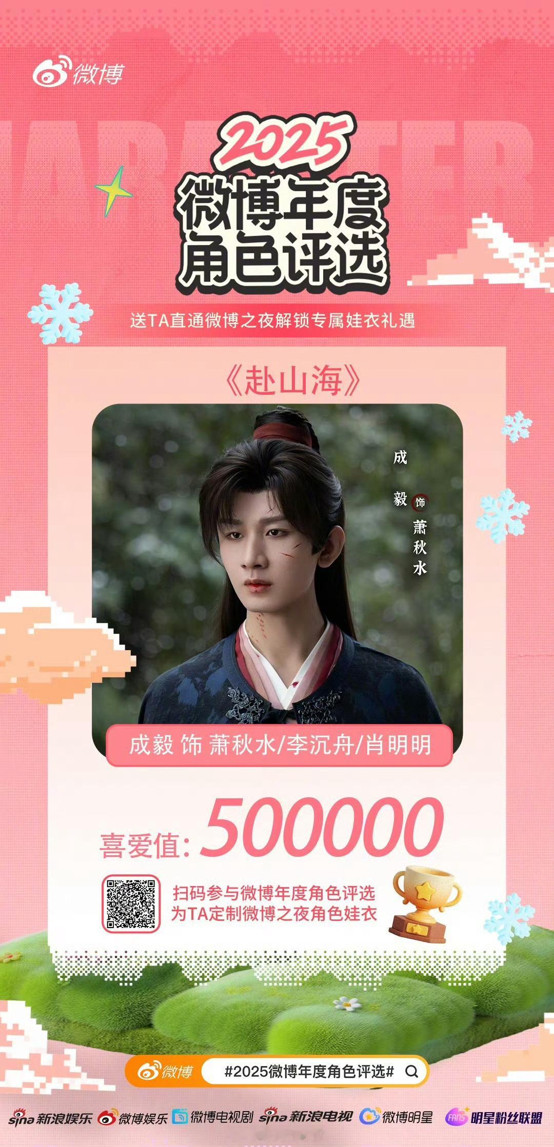 2025微博年度角色评选里成毅5个角色喜爱值都破50万啦!真的是厉害了!成毅5个角色喜爱值破50万