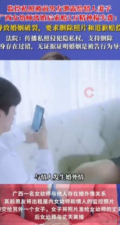 关系太乱了!广西钦州,周某是一名幼师,她明明已婚却和张某保持男女朋友关系,同时又和任教幼儿园园长发展成情人关系。男友发现后,将她和情人在出租屋内的监控照片转给园长老婆,园长老婆一怒之下又转发给了周某的老公,最终周某和老公离婚。事后,周某认为她离婚是男友和园长老婆导致的,起诉二人要求他们永久删除视频和照片、公开向她赔礼道歉,并赔偿她精神损失费2万元。 周某已婚多年,丈夫在本地做生意,常年忙碌。婚后最初几年,两人感情尚可,但随着生活压力增大、交流减少,夫妻之间渐渐只剩下柴米油盐。 周某曾向闺蜜抱怨:“他回家不是玩手机就是睡觉,我们已经很久没好好说过话了。” 正是在这样的情绪空档期,周某认识了张某。 张某是她在一次朋友聚会上结识的,比她略小,为人健谈,情绪价值拉满。最初只是微信聊天,互相倾诉生活的不如意,后来渐渐越界。周某明知自己已婚,却还是默许了这段关系的发展。 “我只是想有人关心我。”她后来在庭审中这样解释。 不久后,两人确定了“恋人关系”,私下以男女朋友相称,频繁约会。张某并不知道周某的婚姻状况,直到后来,才逐渐察觉出不对劲。 事情真正变得复杂,是从幼儿园园长的介入开始。 园长舒某,比周某年长十多岁,已婚,在园内颇有威信。工作中,他对周某格外照顾:调轻任务、优先排班、公开表扬。 起初,周某以为只是领导赏识,但很快,舒某开始频繁私下联系她。 从“关心工作”到“关心生活”,再到暧昧试探,界限被一步步打破。 一次加班后,舒某提出送周某回家,却在车里直言不讳:“你跟你老公幸福吗?” 周某沉默了。 此后,两人发展成地下情人关系。为了避免被熟人撞见,他们多次在园外的出租屋幽会。舒某以为自己足够谨慎,却忽略了一个致命问题——出租屋内安装了监控。 张某真正爆发,是在一次“偶然”。 那天,他发现周某回复信息明显敷衍,定位却显示不在家中。几番追问无果后,他心生怀疑,最终通过技术手段,拿到了那处出租屋的监控画面。 画面里,周某与一名中年男子举止亲密,关系一目了然。 “原来我只是个备胎。” 张某彻底崩溃。 愤怒、羞辱、被欺骗的感觉交织在一起,他选择了最极端的方式报复——将监控截图和视频发给了舒某的妻子。 “你老公在外面干了什么,你自己看看吧。” 一句话,配上证据,犹如一颗炸弹。 舒某的妻子看到视频后,情绪失控。愤怒之下,她不仅与丈夫激烈争吵,还做了一个决定:把这些照片和视频转发给周某的丈夫。 “你老婆在外面做的事,你有权知道。” 这一转发,成了压垮周某婚姻的最后一根稻草。 周某丈夫看到视频后,当场提出离婚。面对铁证,周某百口莫辩。双方很快协议离婚,婚姻就此终结。 消息在幼儿园内迅速传开,周某被停职调查,原本稳定的生活在短时间内全面崩塌。 离婚后,周某将所有的愤怒与痛苦,转移到了张某和舒某妻子身上。 在她看来,自己婚姻破裂的直接原因,并不是出轨本身,而是偷拍视频和传播行为。 “如果他们不发这些视频,我的生活不会变成这样。” 于是,周某将张某和园长妻子一并告上法庭,提出三项诉求: 要求二人永久删除相关视频和照片; 要求公开向她赔礼道歉; 赔偿精神损失费2万元。 她在起诉状中称,偷拍视频和传播行为严重侵犯了她的隐私权、名誉权,给她造成巨大精神伤害。 案件曝光后,引发网友激烈讨论。 有人认为:“偷拍视频、传播确实违法,该承担责任。” 也有人直言:“出轨是因,曝光是果,不能只谈隐私不谈道德。” 更有网友感叹:“一段婚外情,毁了四个家庭。” 法律与道德的边界,在这起案件中被反复讨论。 最终,责任如何划分,赔偿是否成立,还需交由法院依法裁决。 但可以确定的是——当感情失去边界,当欲望凌驾于责任之上,最后付出的,往往不止一个人。 而这场“关系太乱了”的闹剧,也给所有人敲响了一记现实的警钟