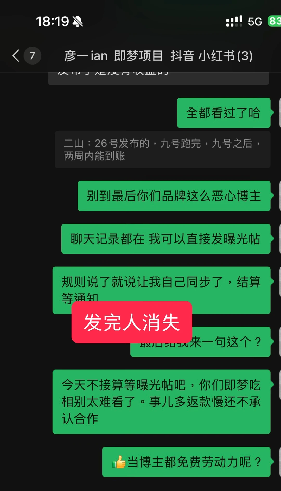 所有聊天记录我都会公之于众,后面的嘴脸和最开始11月简直两样。