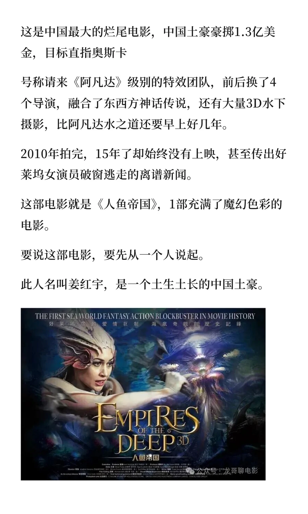 中国最大烂尾电影,土豪花1.3亿美金捧女友