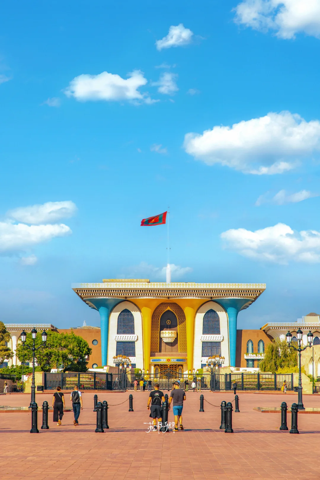 AI Alam皇宫就在阿曼国家博物馆正对面,可外观打卡。前往AI Alam皇宫的路上会路过一个广场,广场左边的长廊拱门很适合拍照;