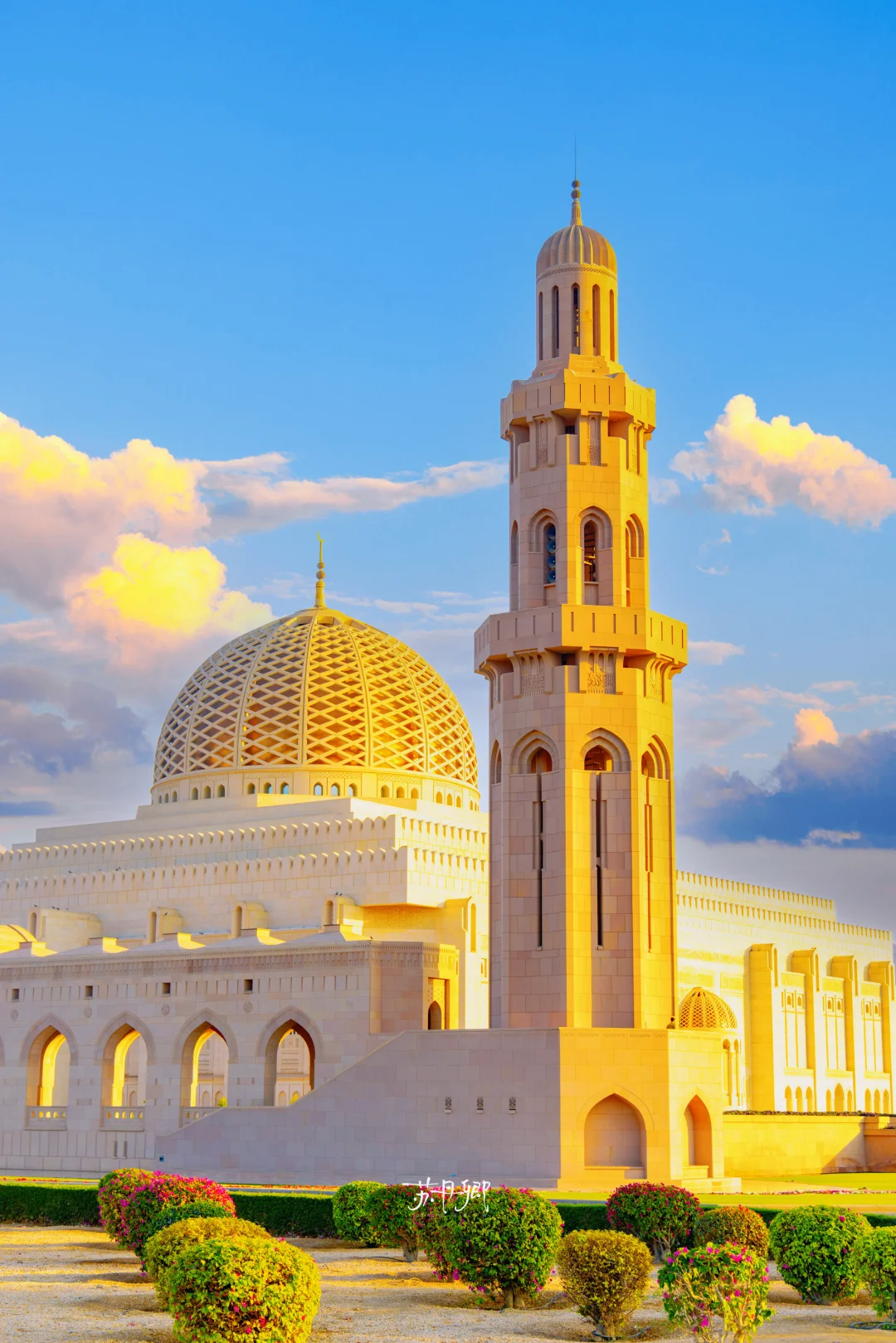 苏丹卡布斯大清真寺的建筑之美,真的让人叹为观止,庄严静谧的白色,在日落中又是这般温柔美好,被《孤独星球》评为中东地区必访宗教建筑。