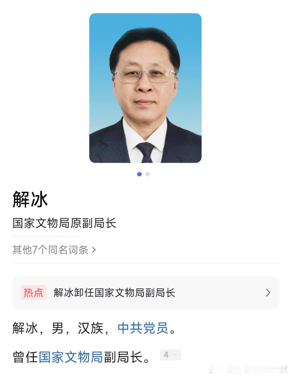 解冰卸任国家文物局副局长职务。