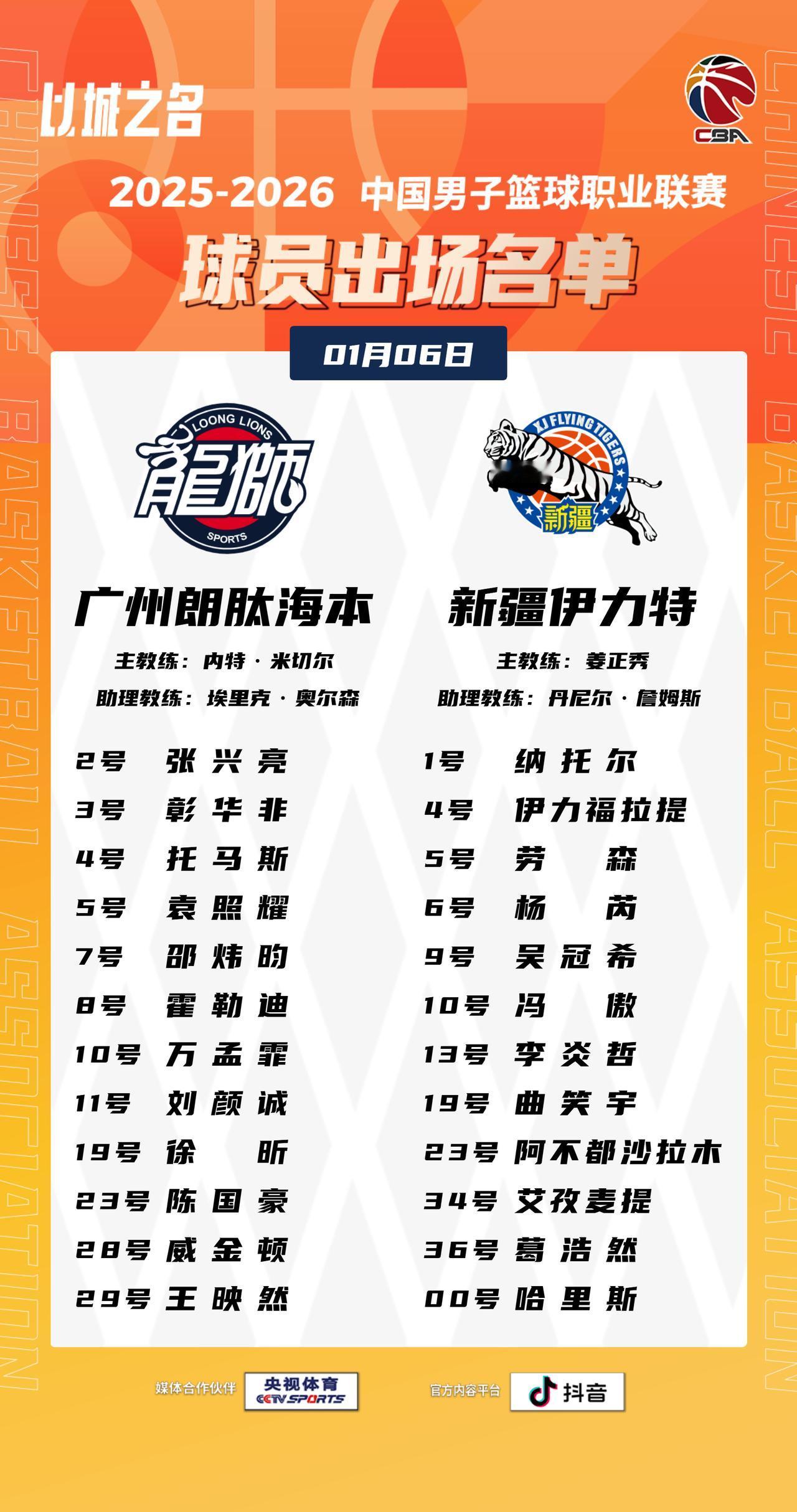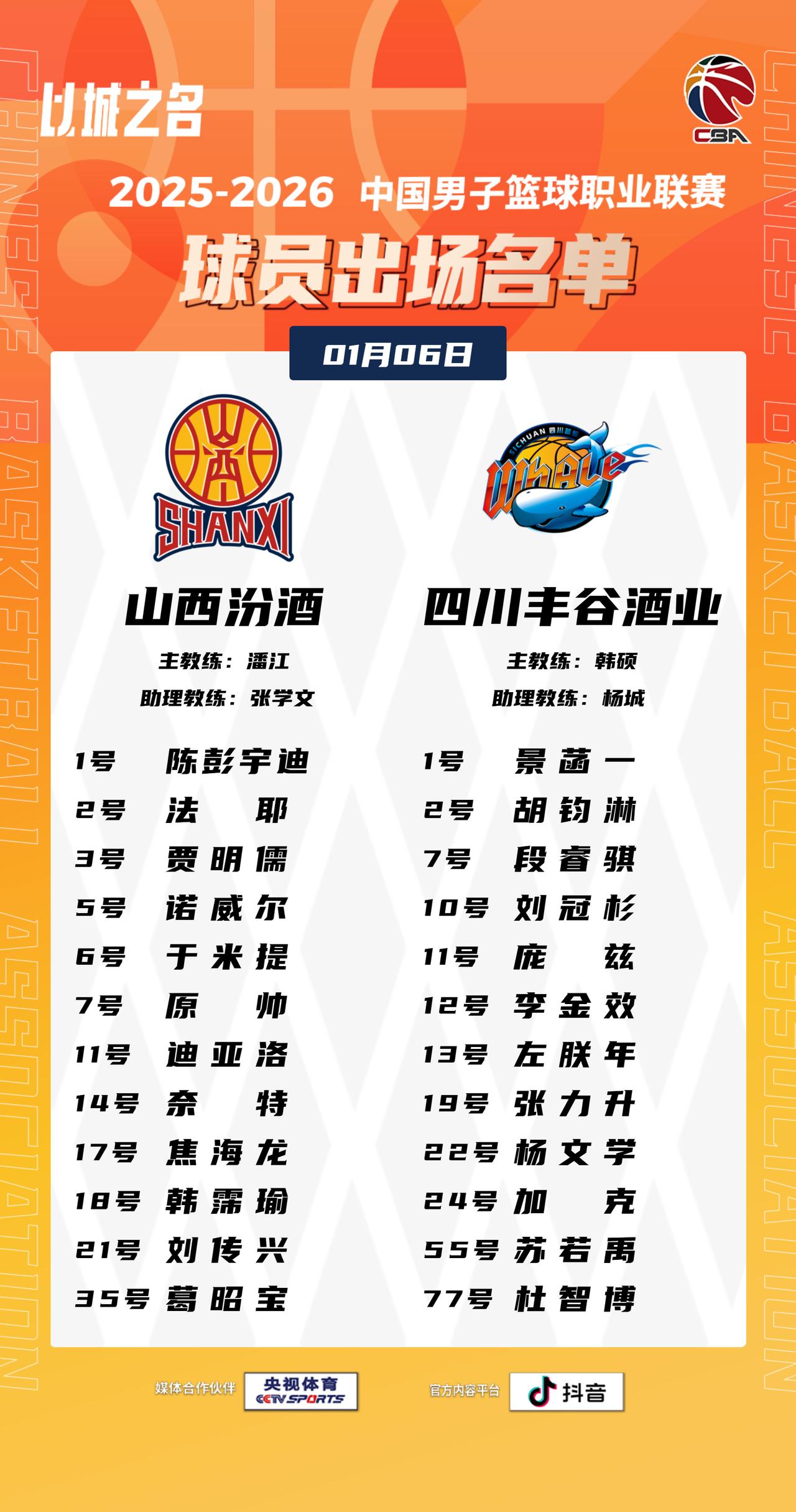 【大名单出炉】2025-2026赛季CBA联赛常规赛第十一轮今晚继续进行,7场比赛将在19:35同时跳球,敬请期待!CBA联赛 以城之名