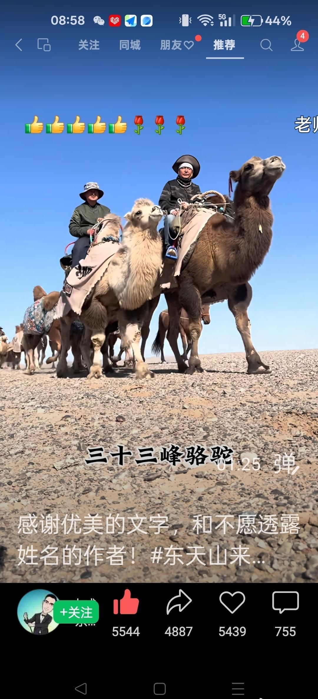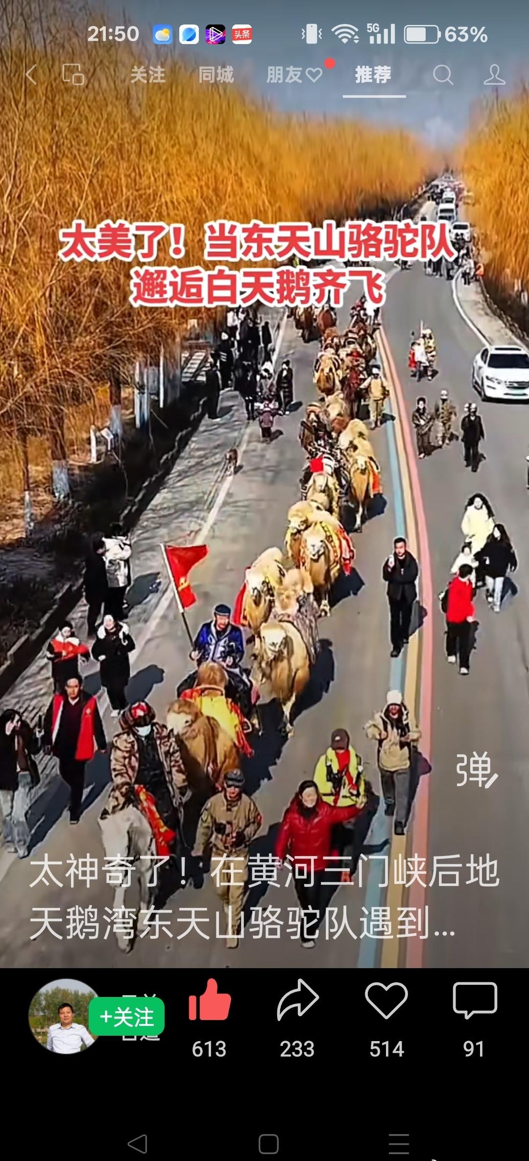 这阵子关注了一个队伍,从第一次刷到视频仔细看了又看,跟着激动感动泪飞了,到现在每次刷到都要看着跟着流泪,民族一家亲!甘肃一驼队为了感谢河南带着驼队行走几千里,一路收到人们的爱戴!今天刷到的两个视频都太让人感动了,一首动人的诗满满都是爱!朗诵诗的人把所有人的感情都给发出来了!声音好听!
