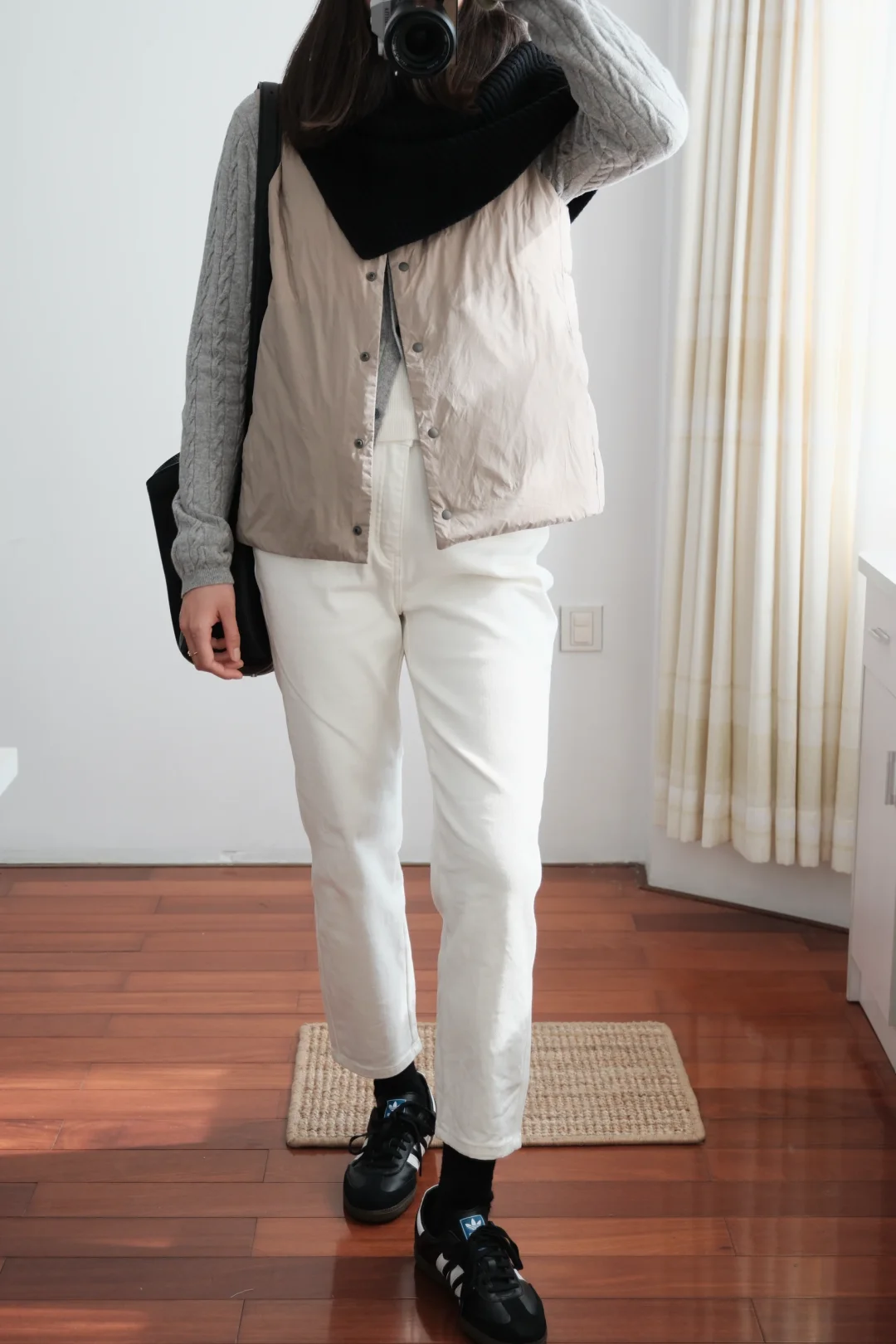 Muji穿搭|无领黑白色棉服 实穿又经典耐看