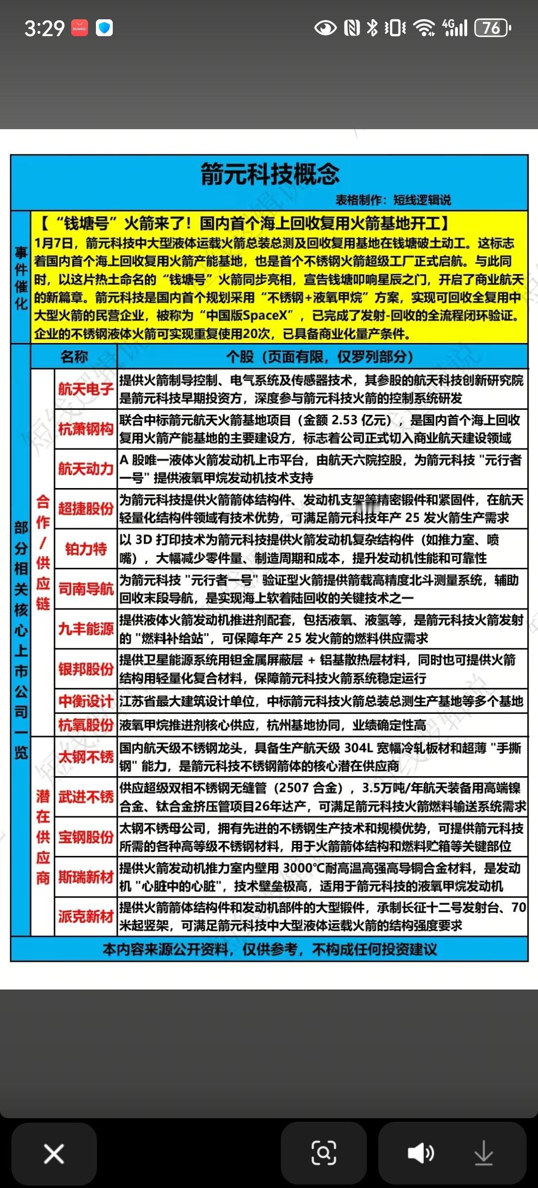 1月9日,周五A股这个板块有望大涨!!! 箭元科技中大型液体运载火箭总装总测及回收复用基地在钱塘破土动工,这标志着国内首个海上回收复用火箭产能基地,也是首个不锈钢火箭超级工厂正式启航,重点关注:超捷股份、司南导航、派克新材!!!