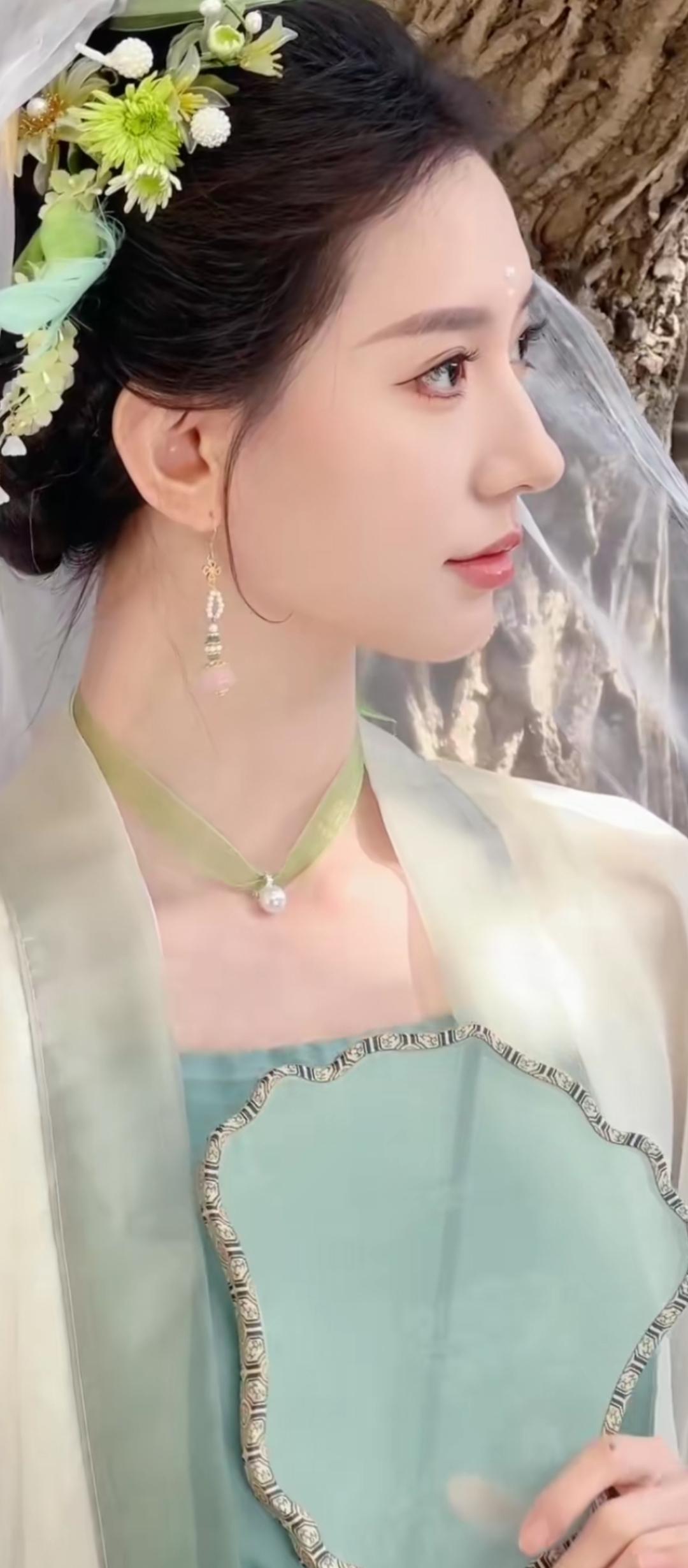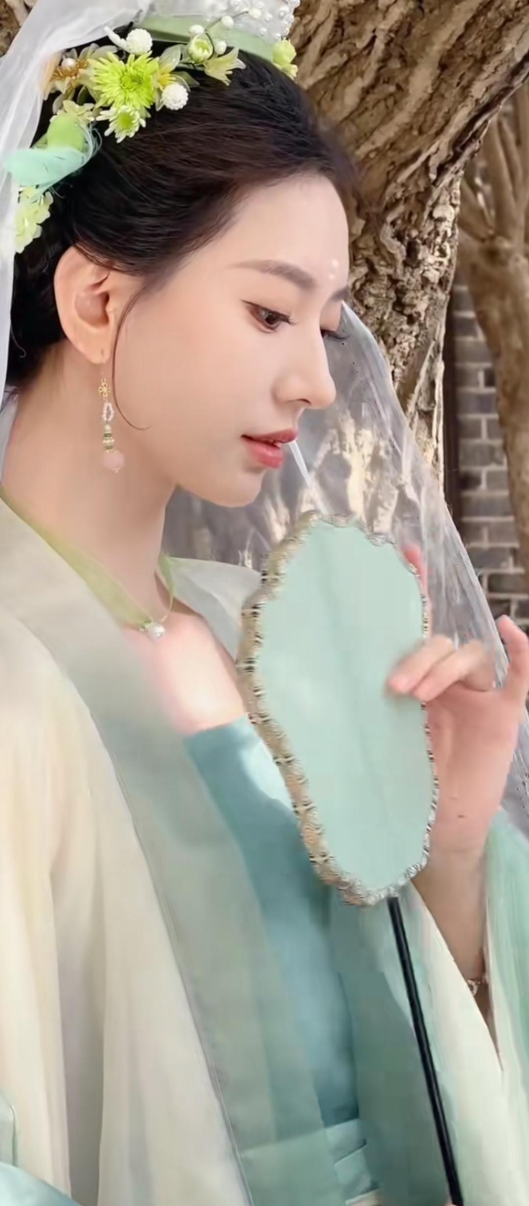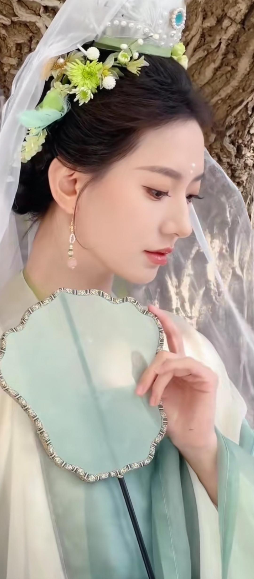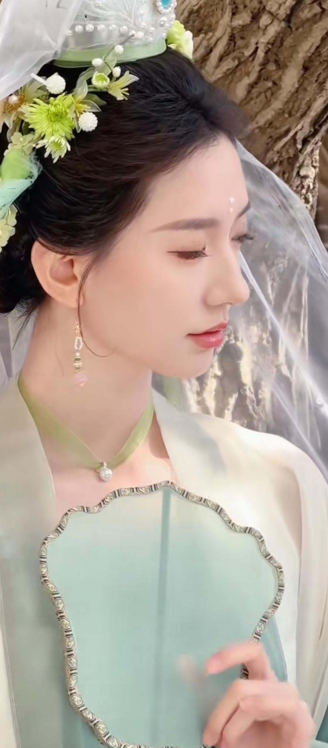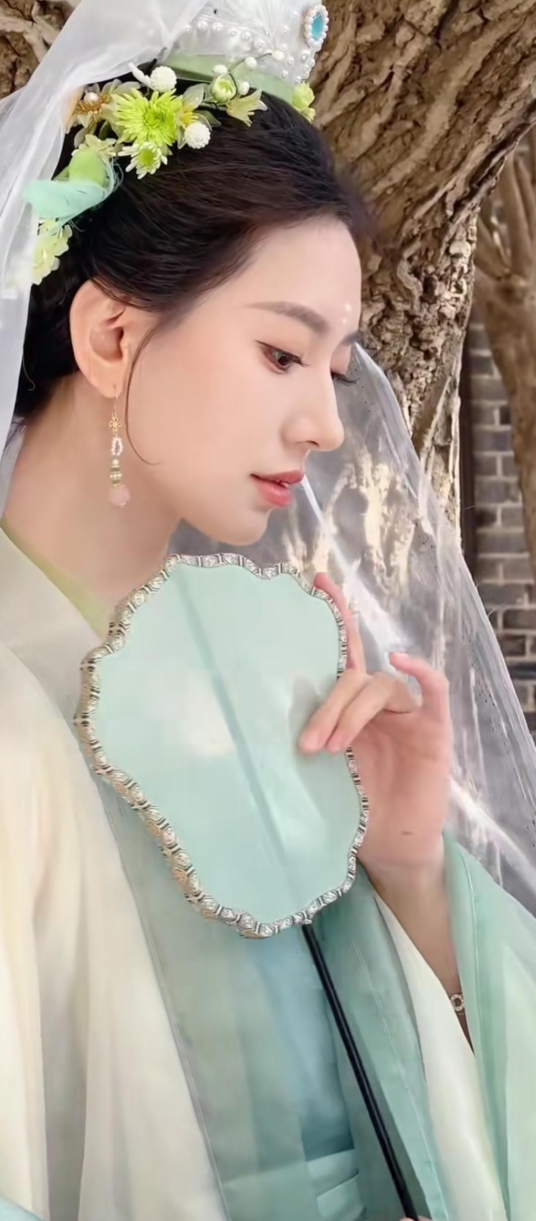 梦幻古风少女,手持团扇,花环点缀,韵味十足!🌸💕