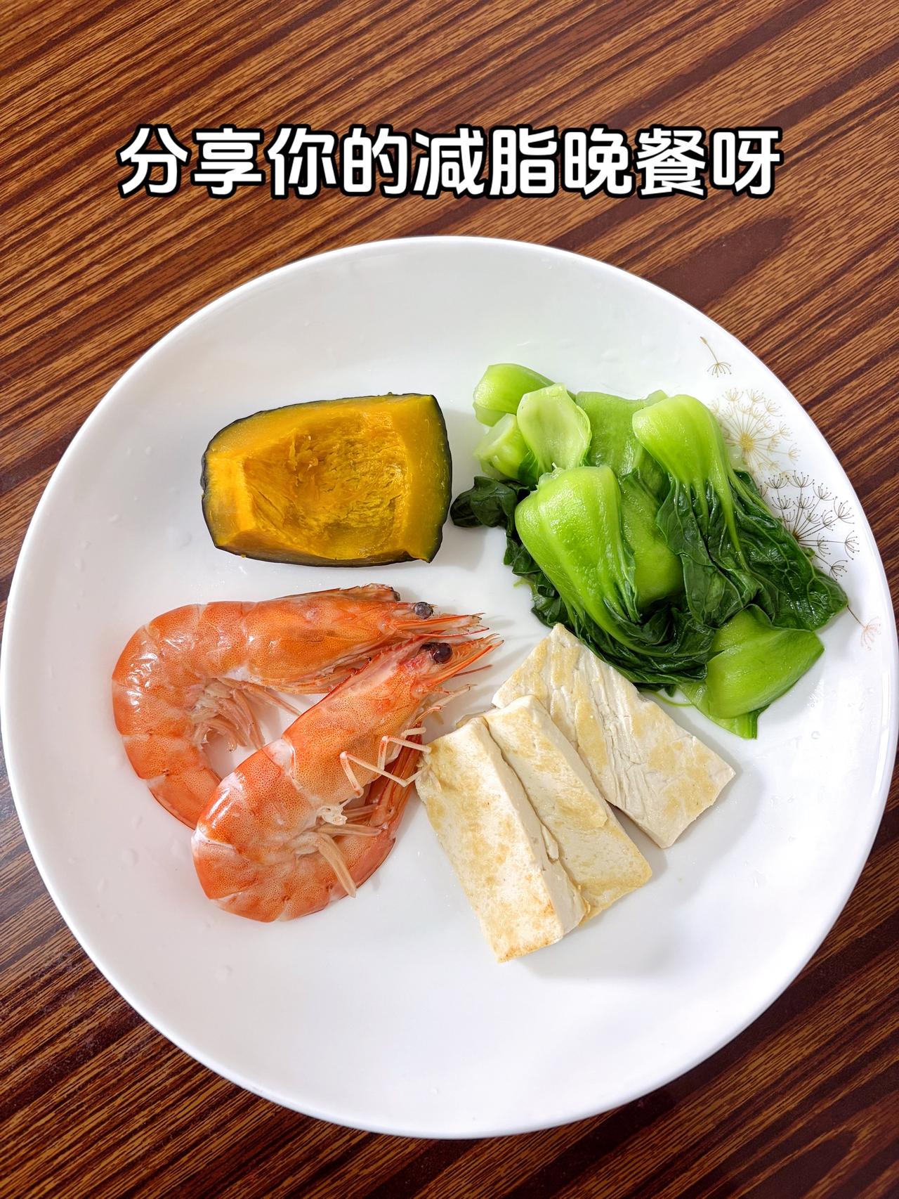 泪水打湿我的减脂餐,目标103斤,加油 今日减脂晚餐:豆腐+青菜+南瓜+虾