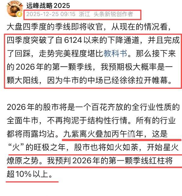 大盘月线,季线浅谈:在上个月月底的时候我说过,四季度突破了自6124以来的下降通道,并且完成了回踩,走势完美程度堪比教科书。果然在2026年一月开局的时候迎来指数首周中阳线,即将开启月线以及季线级别一路向北的超大行情。 单纯从月线上看,目前的行情非常健康,属于量量价齐升的良性状态。从季线级别的角度去看,还是维持去年年底看法:我预判2026年的第一颗季线红柱将超10%以上,乐观情况可能到15%附近。 另外我判断2026年的一月,二月,三月的月线统统都会收阳线,这也是极大概率事件。