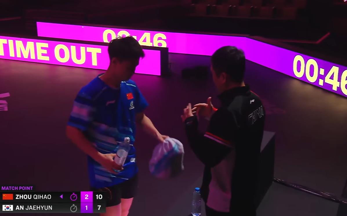 警惕!这次多哈冠军赛,教练指导全程收音直播。 所以教练在指导的时候, 要特别注意了! 我都听到了, 当时周启豪10:7拿到了赛点, 志强说:自己发球想好, 他有可能拧拉, 你要做好准备, 打到相持, 我能接受。 如果他赢了这个球, 他会发逆旋转, 如果不好拉, 你就搓给他, 千万别犹豫。 志强普通话太好了, 我都听的真真的, 对手能听不到吗?