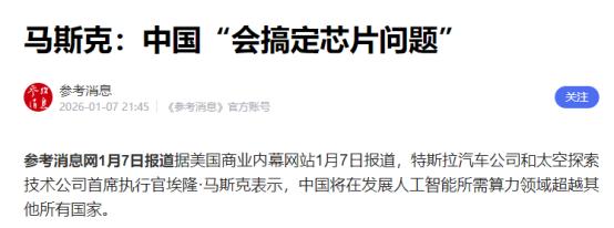 示好中国,马斯克喊话 当地时间1月6日,马斯克在一档播客节目中表示:中国将拥有比其他任何国家都更强大的算力,而且很可能会有更多芯片。   理由很直接,人工智能竞赛的关键是发电量,他预估2026年中国发电量能达到美国的3倍左右。这话听着是捧,其实是戳破了美国商界不愿承认的现实。   在AI时代最核心的能源支撑赛道上,美国已经追不上中国的脚步了。马斯克的示好,本质就是对这个现实的妥协,也是为自己的企业在华发展铺路。   可能有人觉得马斯克是在讨好中国,可只要看看中美能源领域的真实数据,就知道他说的是大实话,半点水分都没有。根据2026年全国能源工作会议的消息,2025年中国发电总装机已经超过38亿千瓦,同比增长14%。   全社会用电量更是首次突破10万亿千瓦时,这个体量相当于整个日本一年的用电量总和。我们还成功应对了20次超去年峰值的电力负荷考验。   更关键的是,中国的能源结构早就不靠化石燃料撑着了。“十四五”以来,能源自给率从80%左右涨到84%以上,还建成了全球最大的可再生能源体系。   2025年风电光伏新增装机约3.7亿千瓦,发电量占全社会用电量的22%,绿证交易规模也超过了历年总和。再看美国,美国能源信息署预测2026年美国电力需求才刚到4.278万亿千瓦时,连中国2025年用电量的一半都不到。   而且他们的发电来源里,天然气和煤炭还占了大半,可再生能源占比到2026年也才26%,跟中国比差了好几个档次。   马斯克是科技圈的明白人,不可能看不到这个差距。他更清楚,算力这东西就是“电老虎”。现在大模型训练一次的能耗,就相当于数百户家庭一年的用电量。   没有充足且稳定的电力支撑,再先进的AI技术也只能是空中楼阁。中国早就提前布局了“东数西算”工程,在京津冀、长三角、贵州、内蒙古等多地建了全国一体化算力网络枢纽节点。   这一布局带动社会投资超万亿元,现在我国算力总规模年均增速近30%,智能算力规模稳居全球第二,西部新增算力占比超七成。而且算力的绿色化水平极高,比如内蒙古和林格尔数据中心集群的绿电使用占比都达到了86%。   这种把西部丰富的清洁能源和东部庞大的算力需求精准匹配的布局,美国根本比不了。他们的数据中心虽然也在扩容,但电力供应跟不上,还得依赖高污染的化石燃料。   长期来看,美国根本支撑不了大规模的算力扩张。马斯克说中国算力会远超其他国家,本质上就是看清了“算力靠电力,电力看结构”的逻辑。中国在清洁能源和算力基础设施上的优势,已经成了AI竞争里的决定性底牌。   更别说马斯克喊出这话,背后全是自己的商业考量。他旗下的特斯拉早就把中国当成了重要的战略基地,根本离不开中国市场和中国的能源优势。   2025年2月,特斯拉上海储能超级工厂已经正式投产。这个工厂专门生产大型商用电化学储能系统Megapack,年产能1万台,储能规模近40吉瓦时,产品供给全球市场。   这可是特斯拉在美国本土之外的第一座储能超级工厂。之后他又追加投资,跟上海合作了总价值40亿元的储能项目。他这么做,都是因为中国不仅有全球最大的储能市场,还有完整的新能源产业链。   全球80%的太阳能电池、70%的风力涡轮机和70%的锂电池都来自中国,这样就能把成本压到最低。这种优势,其他任何国家都给不了。而且中国政府对储能产业的政策支持力度极大,目标是2025年底全国储能装机容量达到40吉瓦。   这种巨大的市场需求,对正面临美国本土商业困境的马斯克来说,就是救命的商机。他现在说中国算力强、发电量足,其实也是在向中国释放信号。他想告诉我们,他跟我们站在同一赛道上,希望能继续深耕中国市场,分走新能源和算力产业的红利。   把这事儿放到中美科技竞争的大背景下看,马斯克的示好更像是美国商界态度转变的一个缩影。之前美国不少势力还抱着幻想,觉得能通过封锁技术、限制合作的方式,遏制中国在AI、算力领域的发展。   这就像当初他们觉得能卡中国半导体的脖子一样。但事实狠狠打了他们的脸,中国不仅没被卡住,反而在能源和算力领域走出了自己的路。我们还形成了从技术研发到产业落地的全链条优势。   美国自己倒是陷入了困境,他们手握可再生能源的核心技术,却因为政策短视沉迷化石燃料,错失了产业落地的机会。现在中国出口可再生能源技术的收入,都已经超过美国出口化石燃料的收入了。   马斯克作为美国商界的代表人物,率先跳出来示好。这其实就是承认了美国之前的策略行不通,在算力和能源这种核心赛道上,中国已经成了无法忽视的对手。与其对抗封锁,不如主动合作分利,这才是他真正的想法。