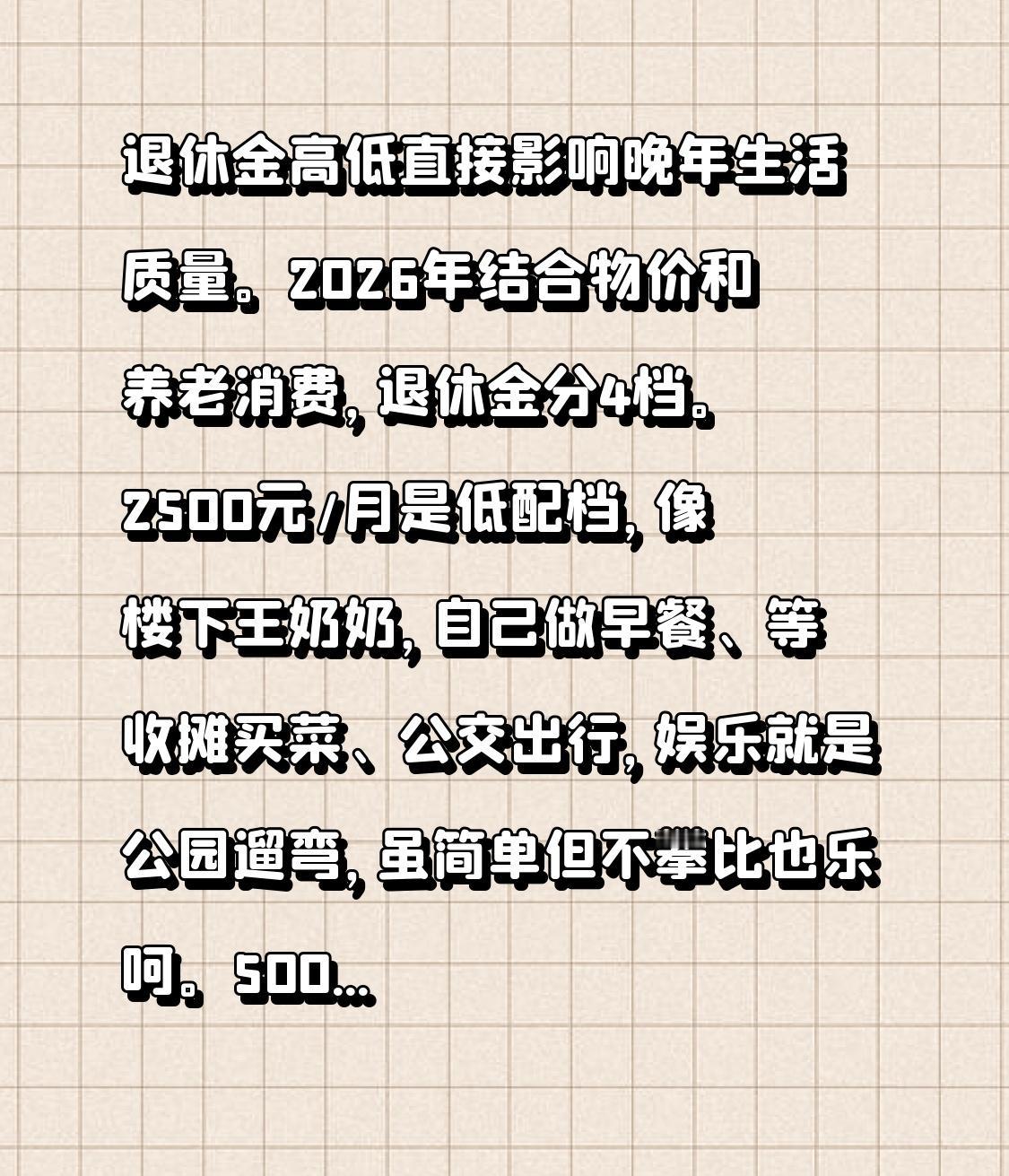 来👀一👀你的退休金属于哪一档? 退休金高低直接影响晚年生活质量。2026年结