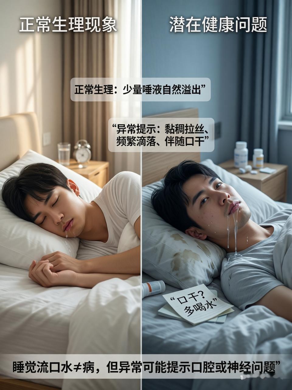 睡觉流口水是病吗? 很多朋友都有睡觉醒来发现枕头湿了一块的经历,这到底是不是生病了呢? 其实,睡觉流口水在大多数情况下是正常的生理现象。它通常与睡姿有关,比如趴着睡或侧卧时,口腔无法完全闭合,唾液受重力影响自然流出。此外,极度疲劳、睡眠过深导致面部肌肉松弛,或者睡前使用了某些镇静药物,都可能引起暂时性的流口水。 然而,如果经常性、大量地流口水,或者伴有其他症状,则可能提示一些健康问题。例如,口腔炎症(如牙龈炎、口腔溃疡)会刺激唾液分泌增多;鼻炎、鼻窦炎或腺样体肥大导致鼻塞,迫使睡觉时张口呼吸;中风先兆或面神经炎可能导致面部肌肉失控;老年人则需警惕阿尔茨海默病或帕金森病的可能。 总而言之,偶尔流口水不必惊慌,调整睡姿和生活习惯即可。但若长期严重流口水,建议及时就医检查,排除潜在疾病。
