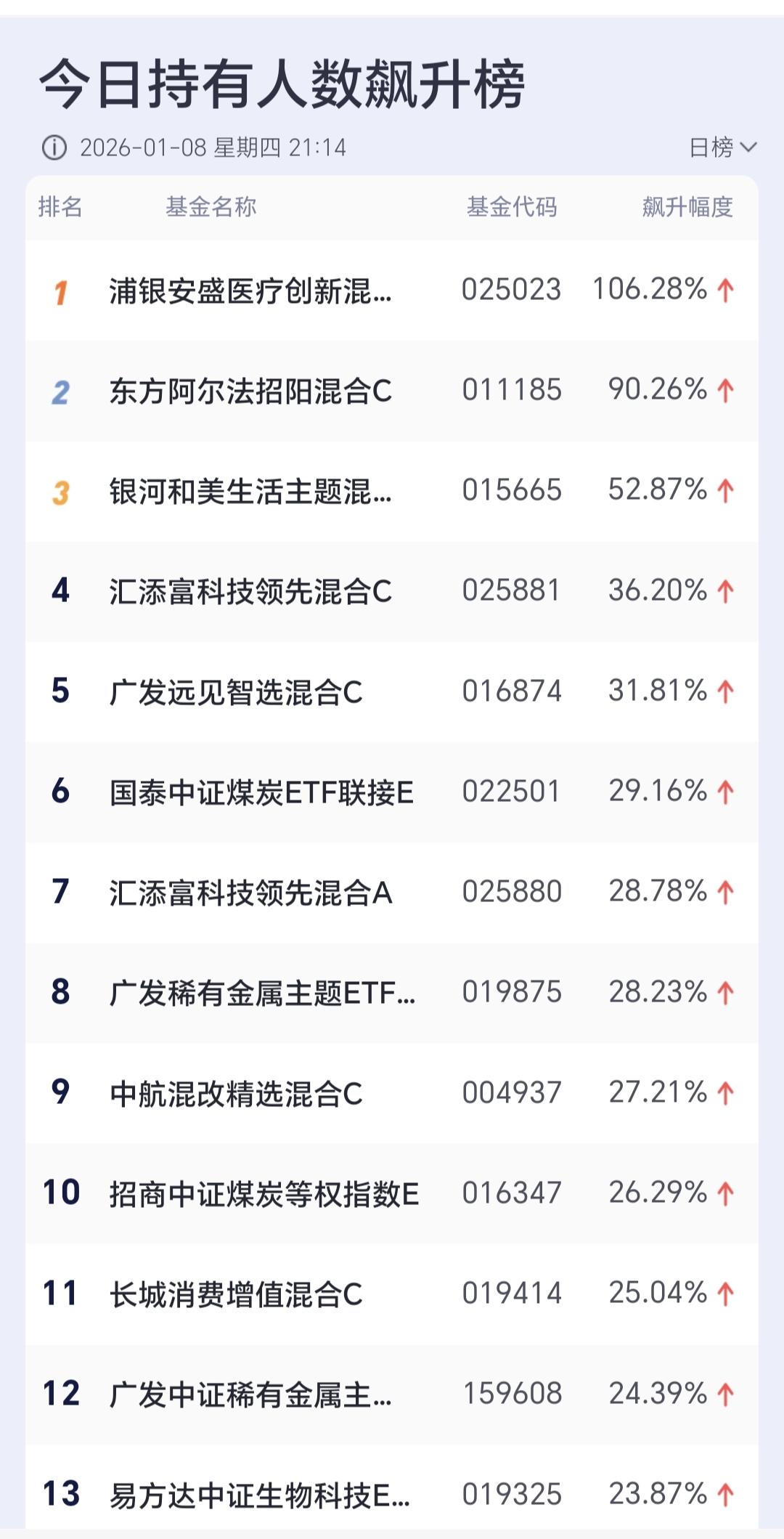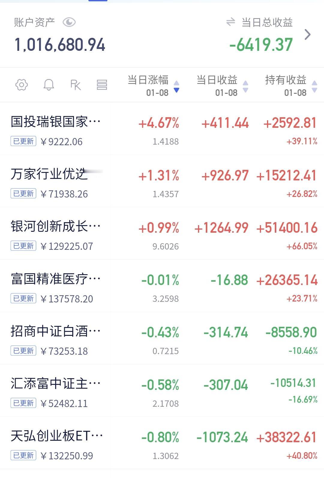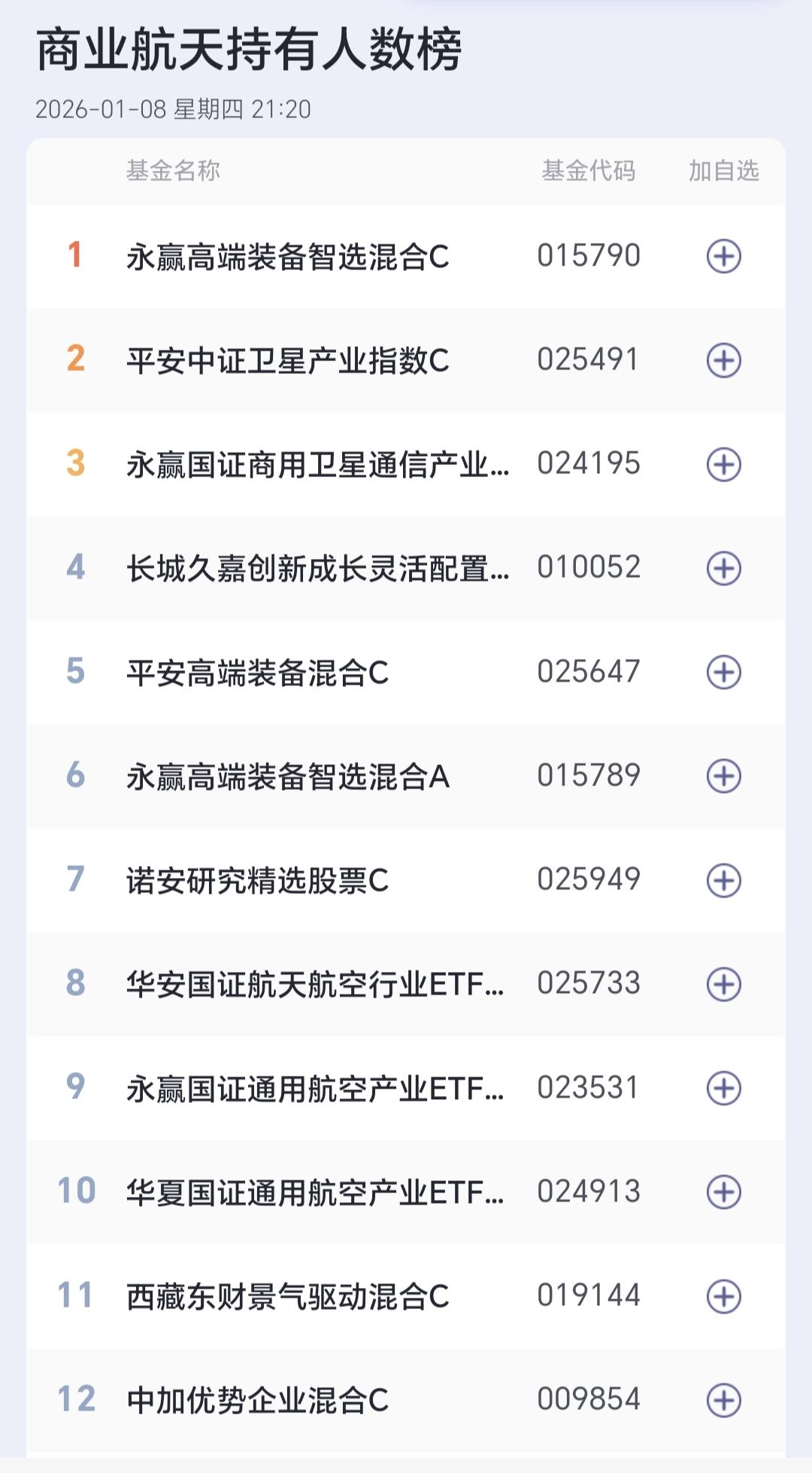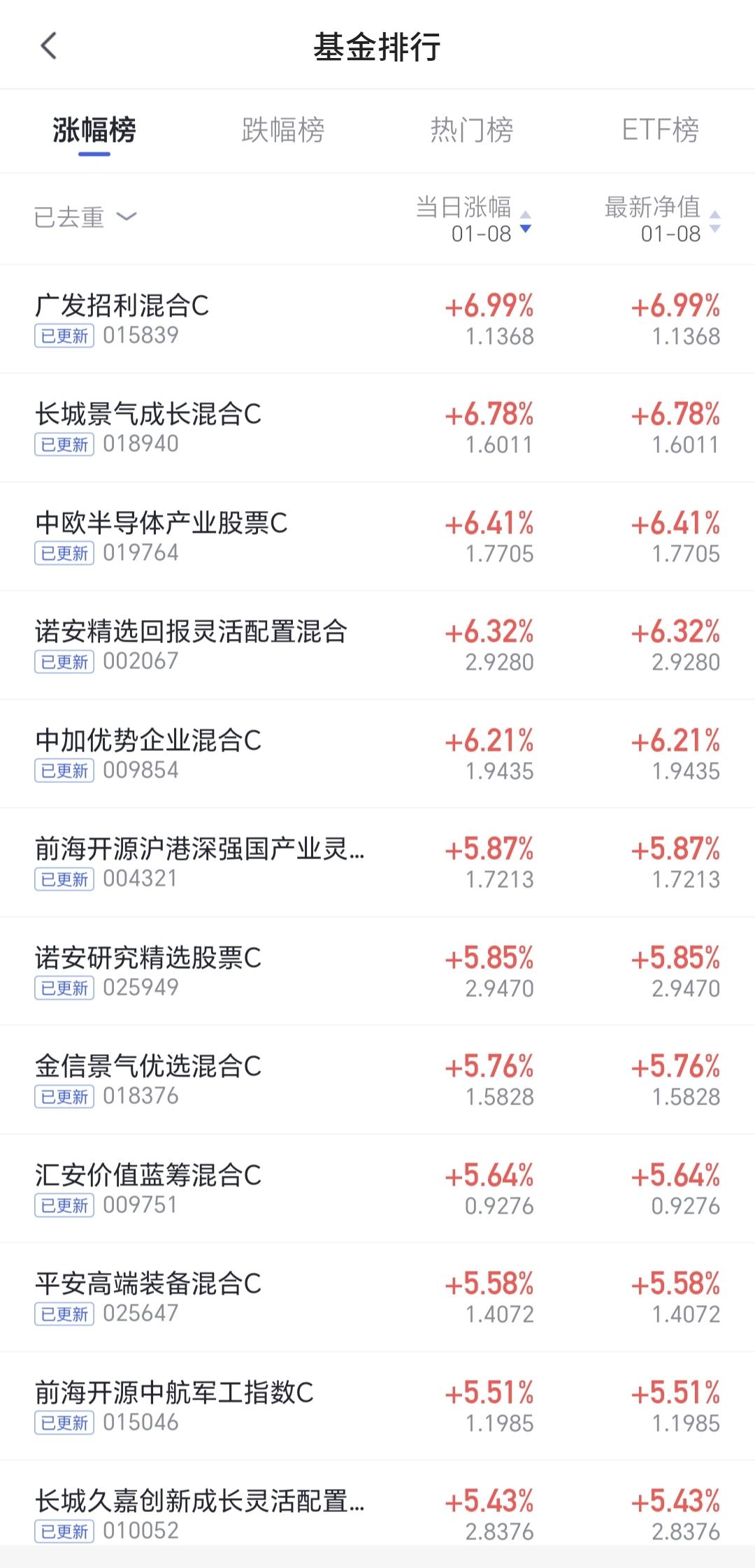 基金:这只基金今天大涨了6.99% 欧洲市场今天下跌,法国下跌了0.28%,英国下跌了0.29%,德国下跌了0.29%,下跌幅度都不大。 香港市场今天也是下跌,恒生指数下跌了1.17%,国企指数下跌了1.09%,恒生科技指数下跌了1.05%,下跌幅度都超过了1%以上。 图3是今天基金的加仓排行榜,图4是今天基金的减仓排行榜,图5是今天基金的持有人数飙升榜,图6是今天基金的加仓人数和减仓人数,今天加仓66054183人,今天减仓22030320人,今天加仓人数超过了减仓人数。 持有的基金中,今天晚上净值全部更新上涨幅度最大的三个板块是:军工板块,先进制造板块,芯片半导体板块,下跌幅度最大的三个板块是:证券板块,新能源汽车板块,上证50板块,净值整体亏损了6419元。 所有的基金中,今天上涨幅度最大的三只基金是:广发招利混合,平安高端装备混合,平安中证卫星产业。 广发招利混合今天大涨了6.99%,属于商业航天板块,板块上涨了4.35%这个板块今天加仓排行榜见下面的截图12,持有人数排行榜见下面的截图13,加仓人数最多的是诺安精选回报灵活配置,持有人数最多的是永赢高端装备智选混合。 我们来看一下下面的截图14,这是商业航天板块日K线图,从图中可以看出,我画了两条倾斜向上的斜线,这是商业航天板块日线级别上涨通道,星期一的时候,上涨突破了这个上涨通道的上轨,也就是说,这个板块有可能在走加速走势。 我们来看一下下面的截图15,这是商业航天板块周K线图,从图中可以看出,我画了两条倾斜向上的斜线,这是商业航天板块周线级别上涨通道,本周的上涨突破了这个上涨通道的上轨,也就是说,商业航天板块周线也有可能在走加速走势。 我每天都会分享我的观点,我的观点只代表我个人的看法,不能作为你操作的依据,据此操作后果自负,谢谢大家的评论点赞和支持。