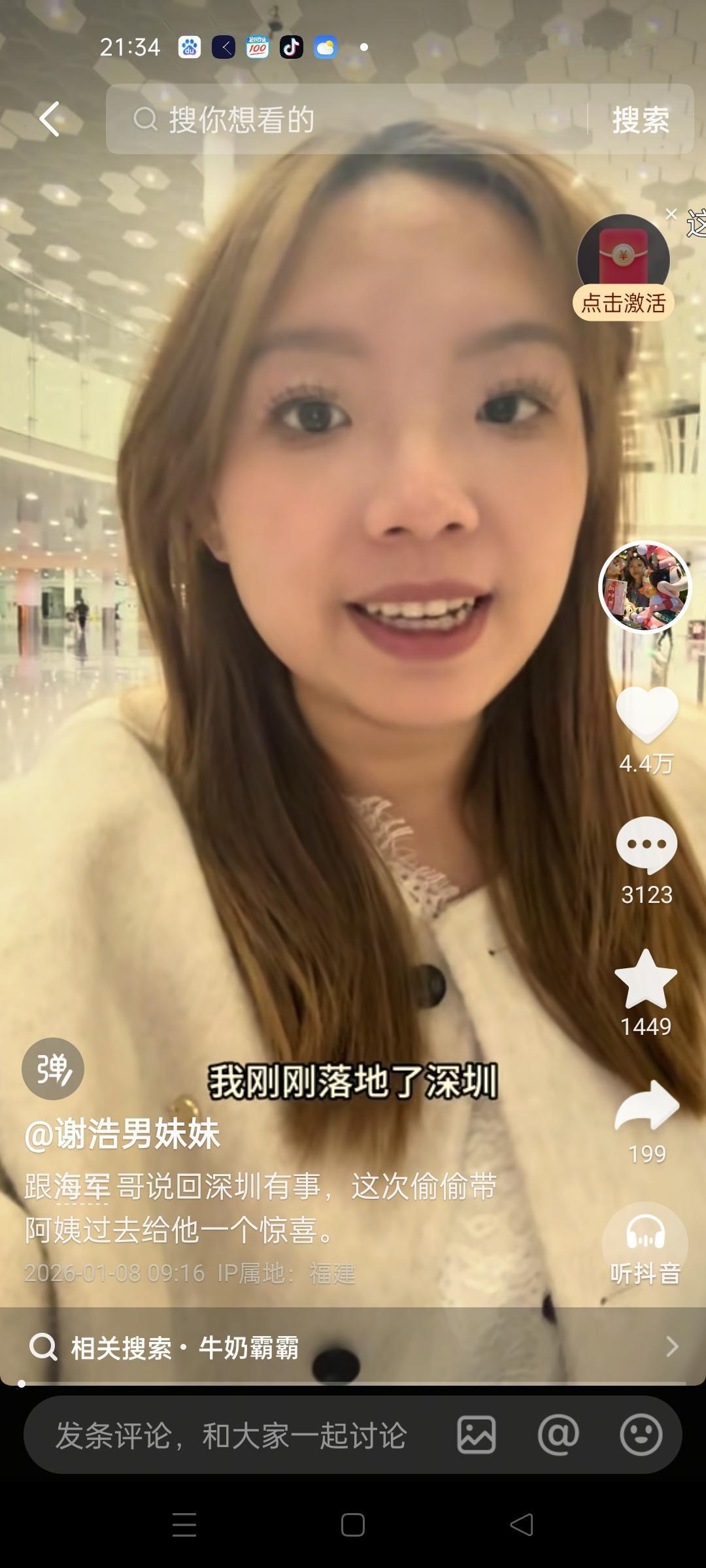 谢浩楠妹妹独自一人乘坐高铁来到了海军哥哥的老家,想邀请海军哥哥的妈妈一起前往海军的直播地点,给海军助力,大妹现在不光直播的能力提升起来了,化妆的技术也越来越棒了,就看大妹这双炯炯有神的大眼睛长长的睫毛,就能看出她的灵动和睿智。只是大妹的发际线特别高,如果能用用她前段时间的洗护用品,看看能把头发再生发一下就更动人了。