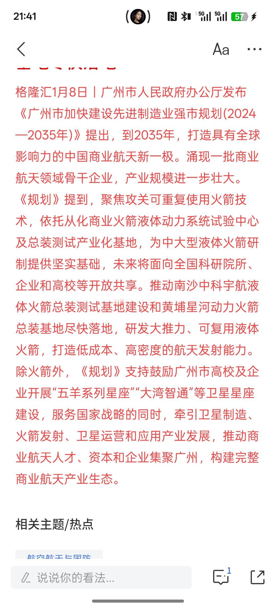 商业航天又加了一把火,剑指中国商业航天新一极!广州拟攻关可复用火箭技术 推动两大基地尽快落地,航天航空,包括卫星的星座建设,将迎来一个全面的发展机遇!那在相关芯片行业又有巨大的需求。最近,商业航天相关公司股价也是大幅上涨!低空经济将迎来大量的发展!我国在商业航空航天发展的比较晚!美国在商业航空航天发展相对比较早!中国也在快速的发展自己的商业航天航空!