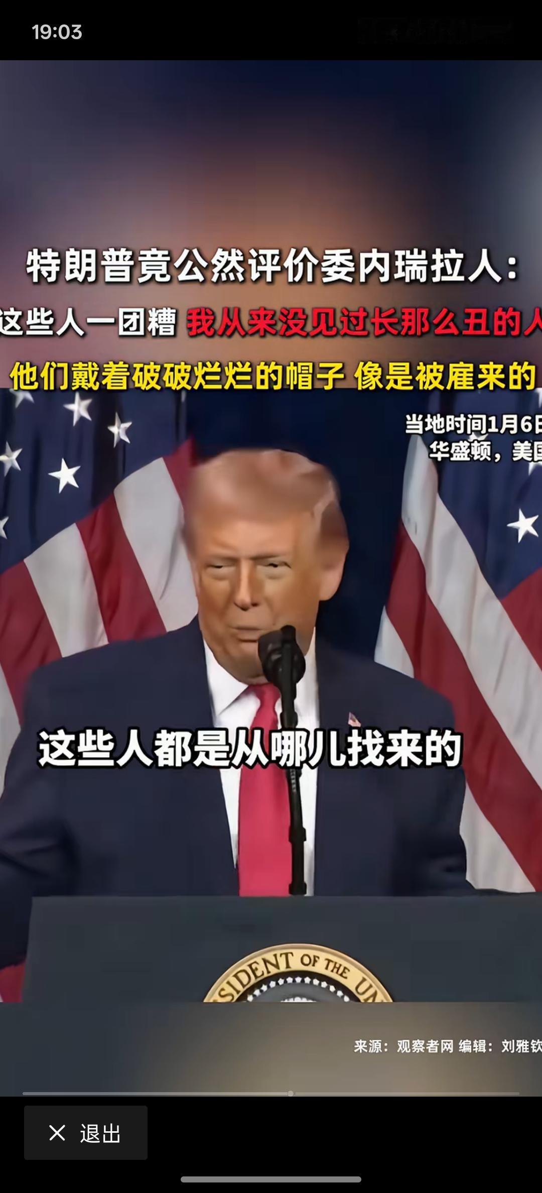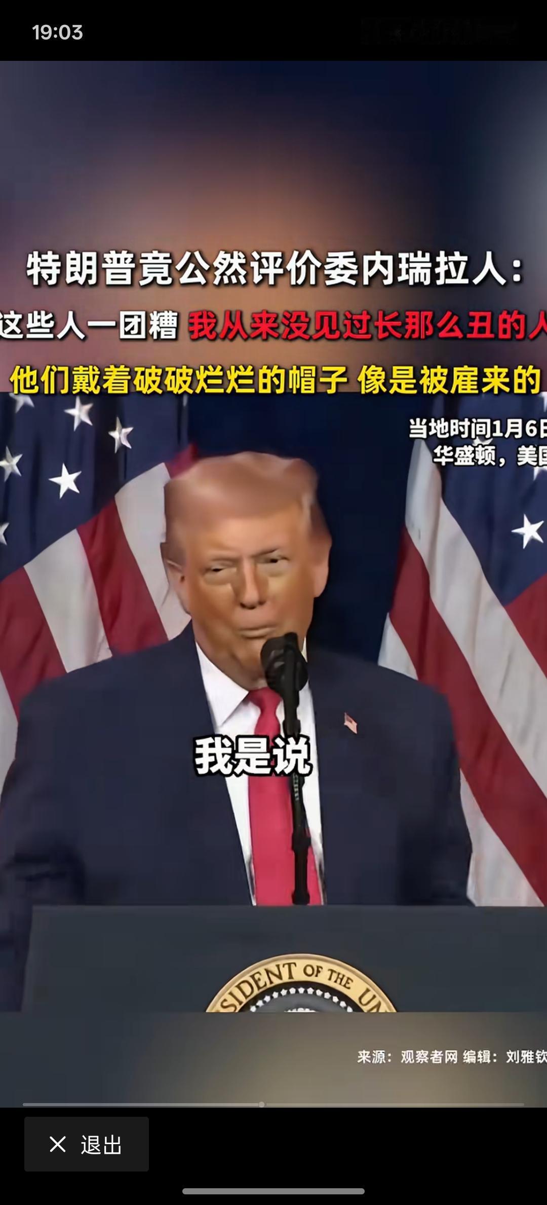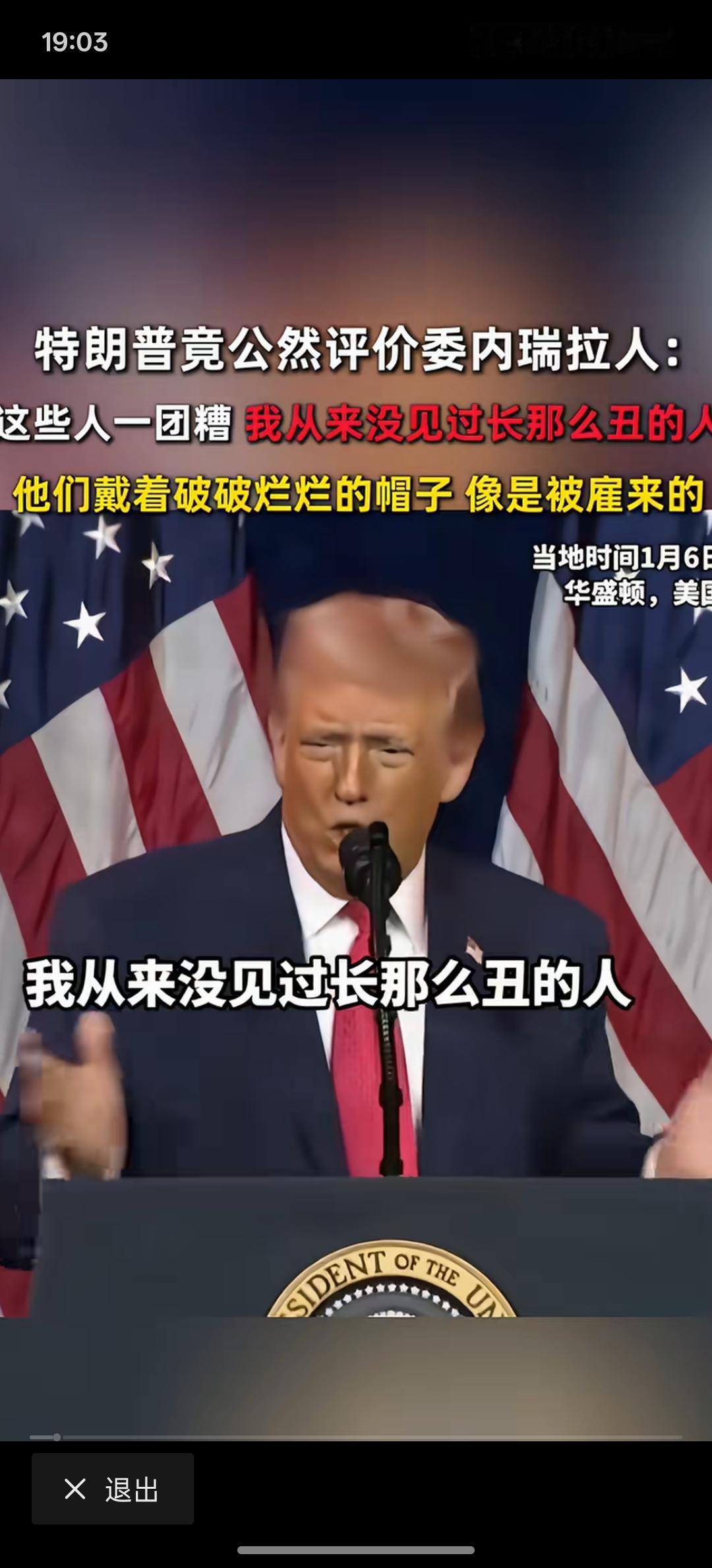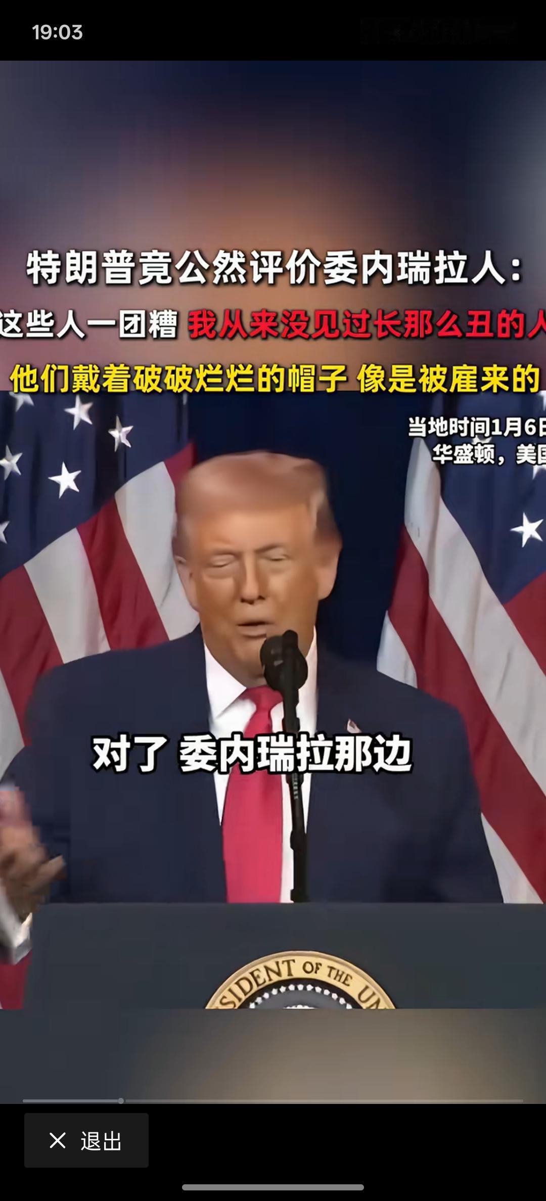 特朗普开始调侃委内瑞拉人民,从来没有见过长的那么丑的人,委内瑞拉人民,他们戴着破破烂烂的帽子,像是被雇来的人一样,委内瑞拉人民简直就是一团!特朗普真的是说话不打草稿!其如此,丑化一个国家的人民!难道你没有看你们美国满大街的都是瘾君子吗?