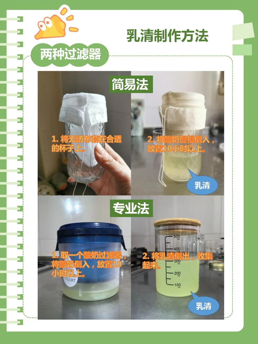 [庆祝R]获得乳清比做啥波兰种老面啥的简单多了,就是把酸奶用纱布或者无纺布或者酸奶过滤器过滤一下就得到乳清了。做法如图7所示,详细的也可查看我前面关于希腊酸奶的笔记。