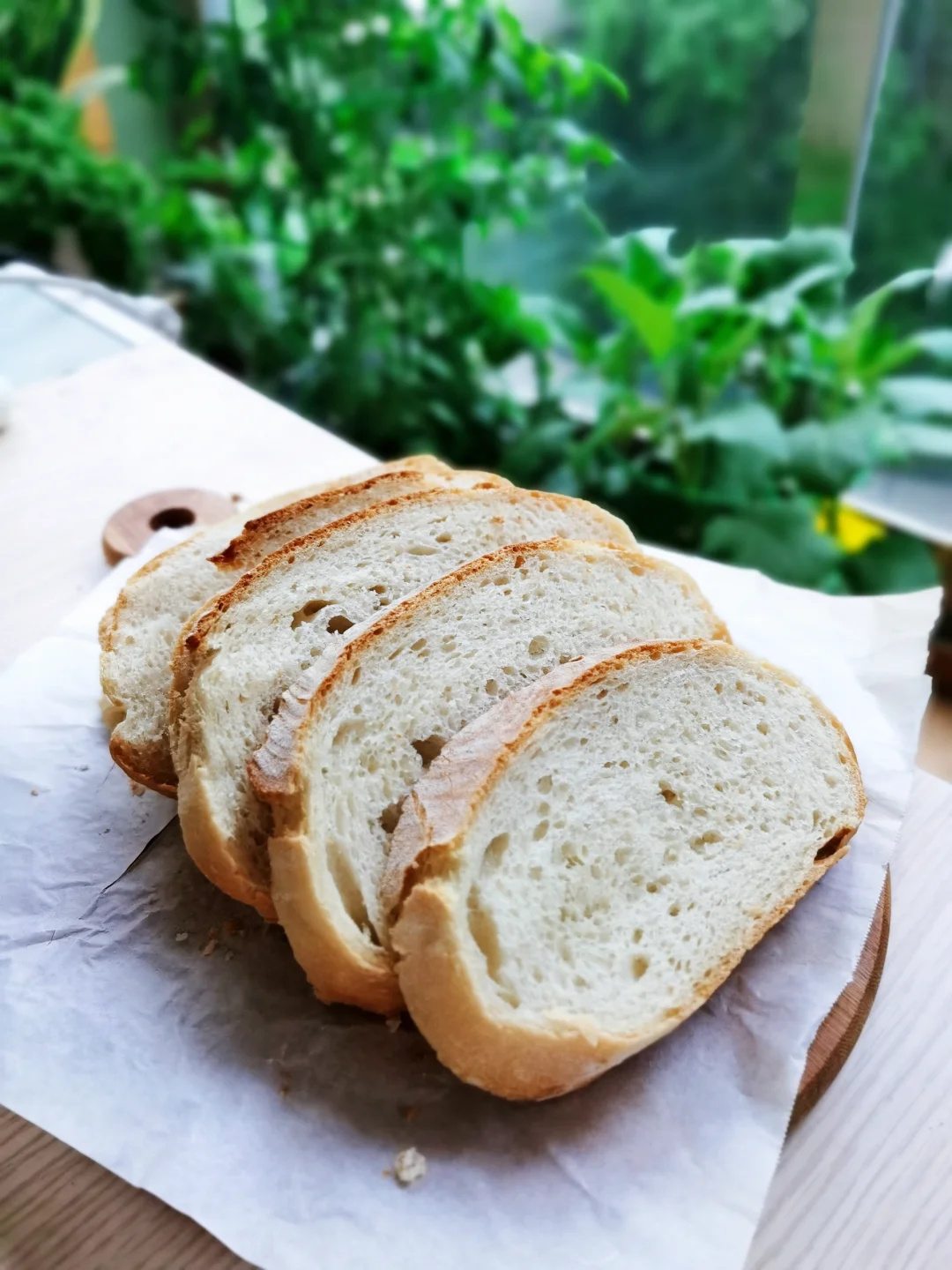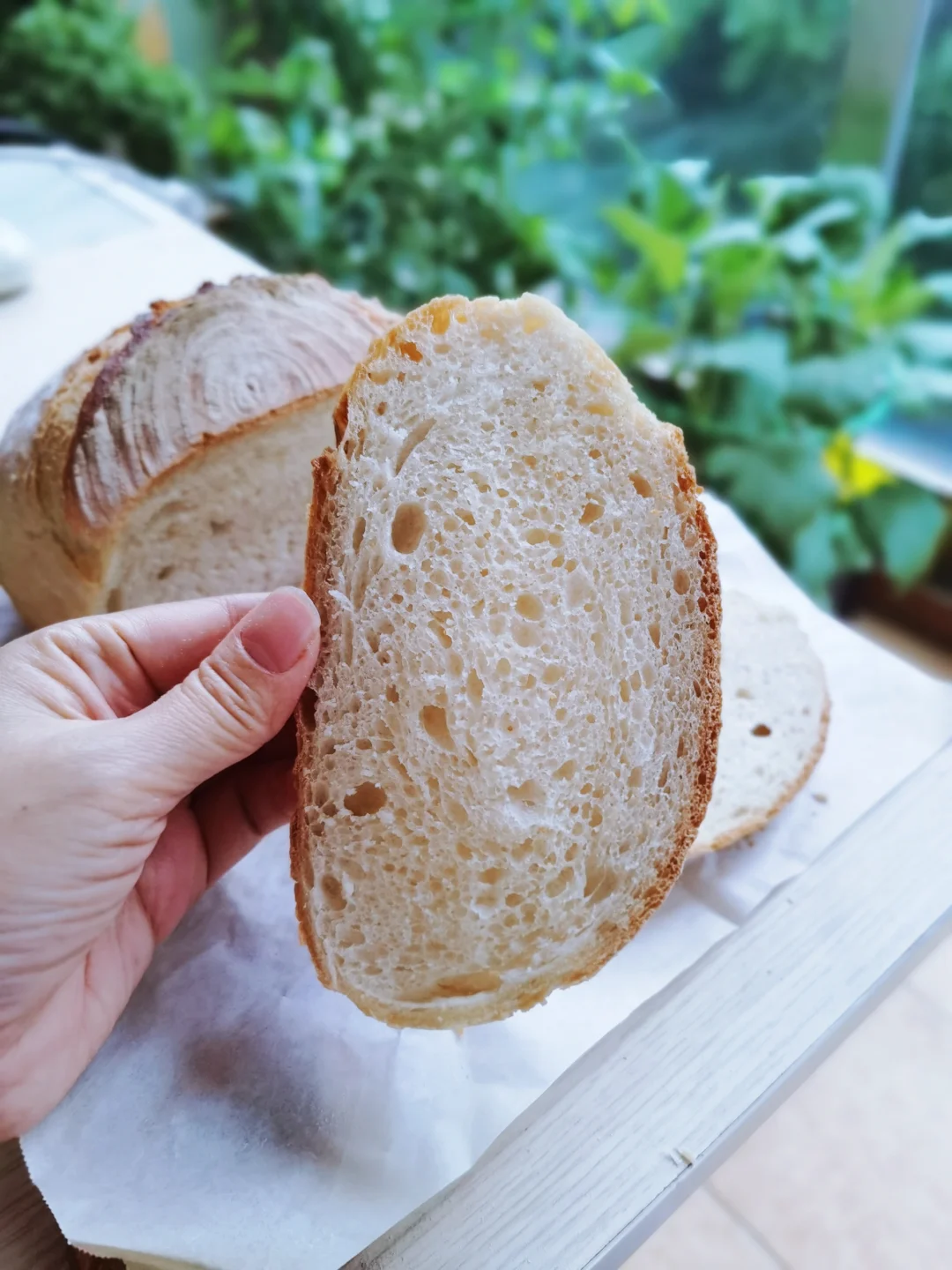 但是法式面包的大气孔不是必须有的,在法国吃过的面包也不是大气孔的。这个用面包机完成欧包面团的发酵过程,大大节省了制作时间, 2个多小时就能完成,因为快,所以出不了大气孔,但是味道并没有太区别,做面包也要讲性价比,所以我觉得没有必要一定追求大气孔,这样晚上回家就能做一个欧包了,只有日常化了才有实用性。