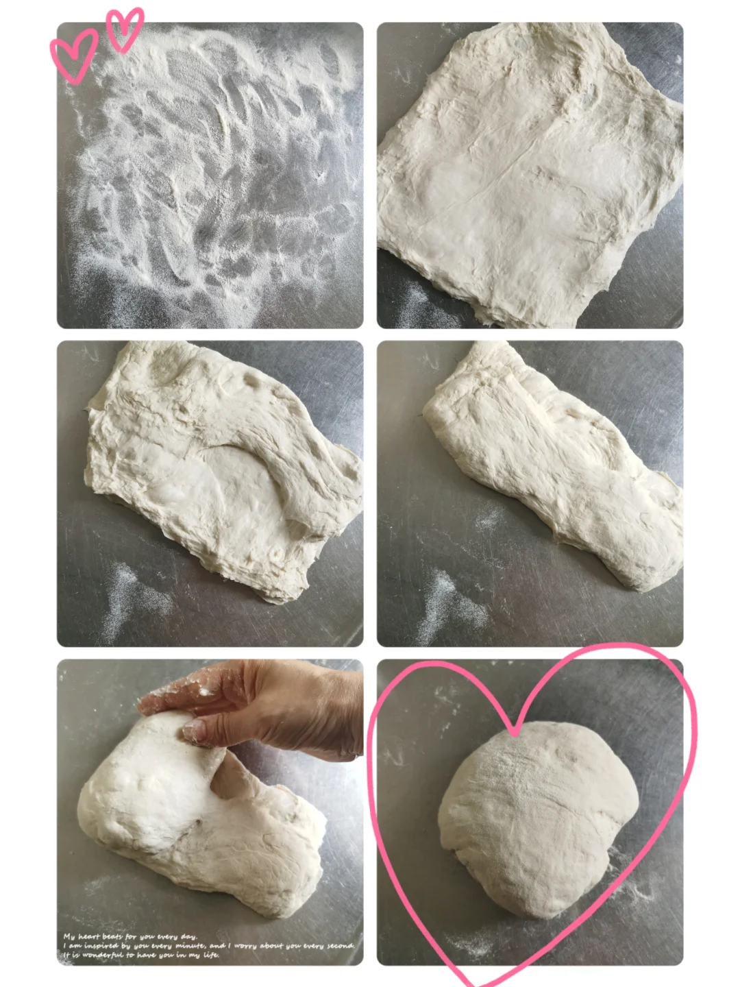 3. 左右折叠后,再从上而下卷成一个面包团,注意不要挤压。