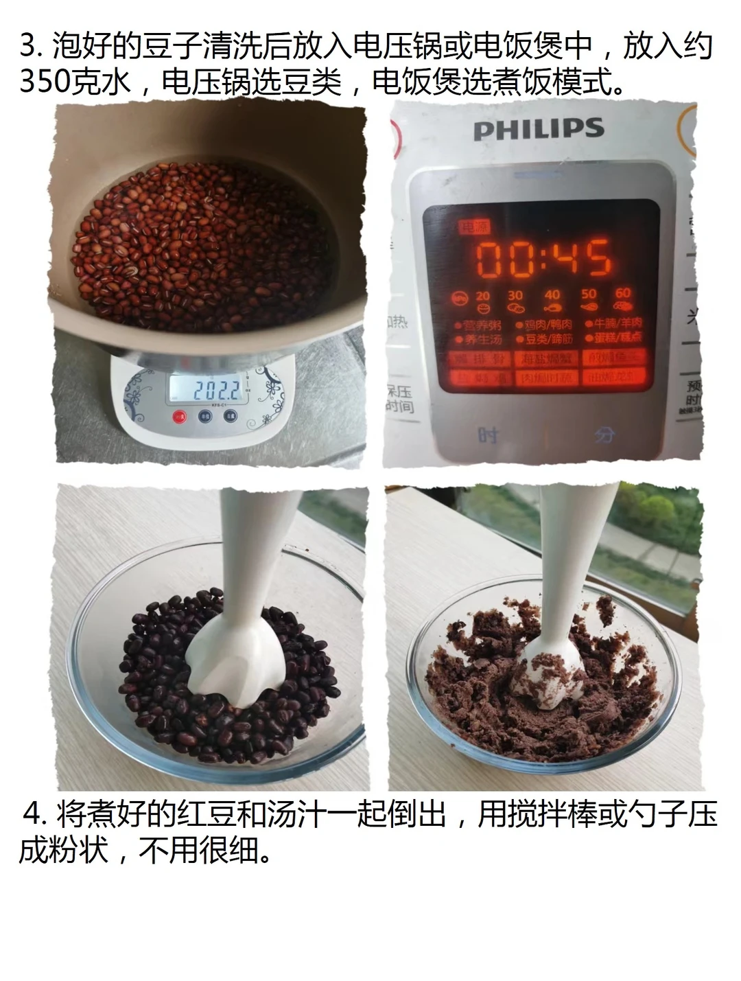 注意:1. 配方煮红豆的水放的比较少,是为了减少翻炒的时间,宝子们可以根据煮豆的情况调整。