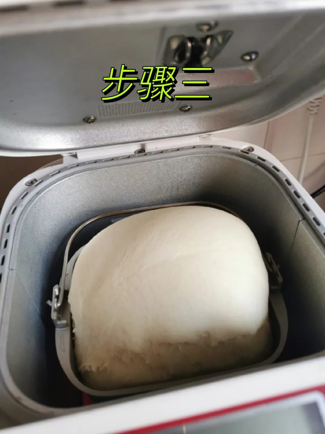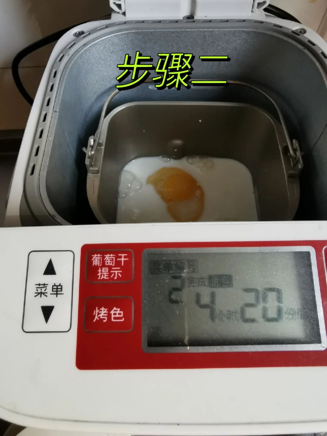 [二R]如果是松下面包机,菜单选择:软式面包,烤色:淡,按开始键即可。如果是其他品牌的,按下普通面包程序,就不用管它了。