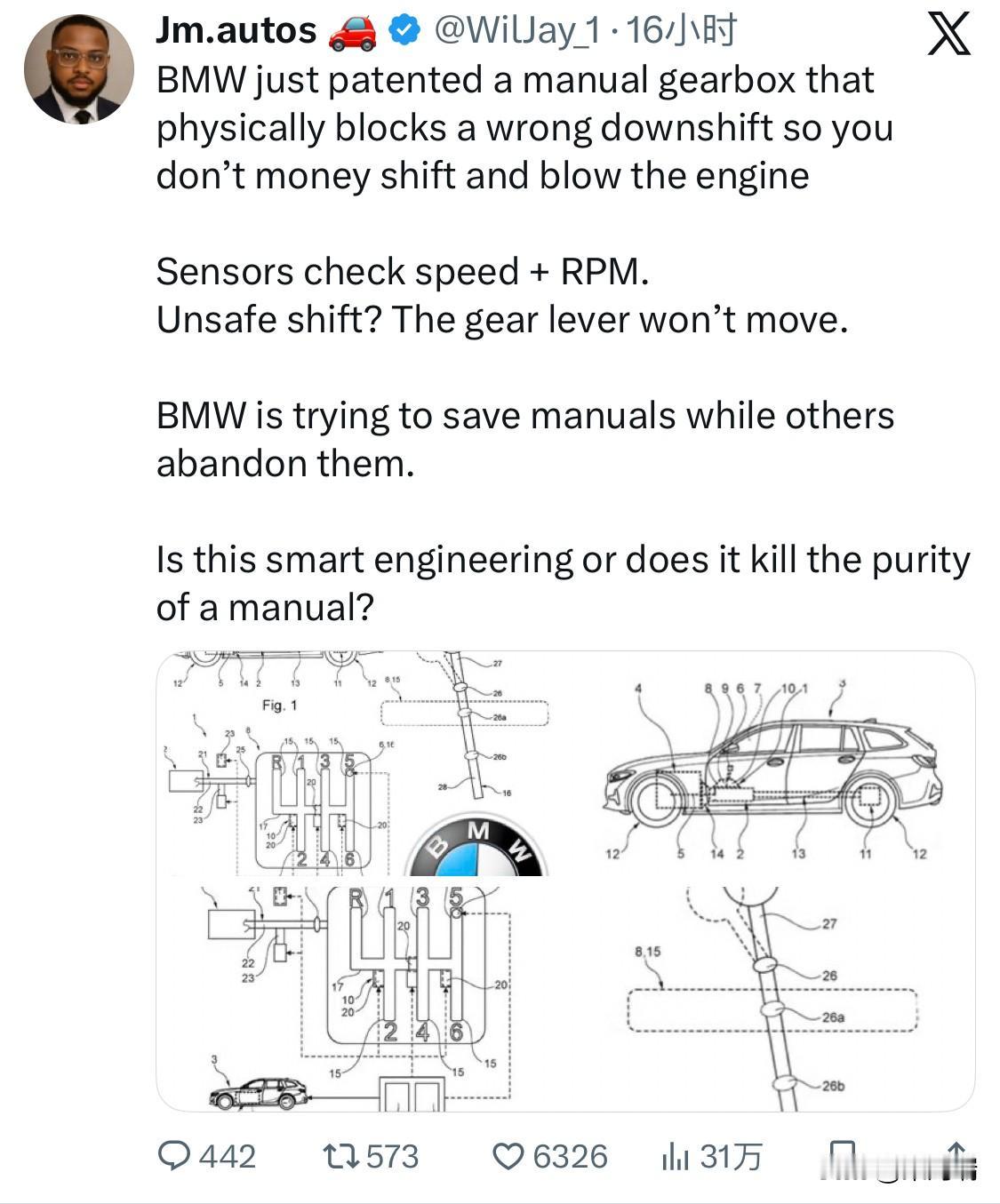 宝马刚刚获得了一项手动变速箱专利,该变速箱可以通过物理方式阻止错误的降档,防止误操作导致发动机损坏。 传感器检测速度和转速。 换挡不安全?变速杆无法移动。 宝马正在努力保留手动挡汽车,而其他厂商却放弃了手动挡。 这是巧妙的工程设计,还是破坏了手册的纯粹性?