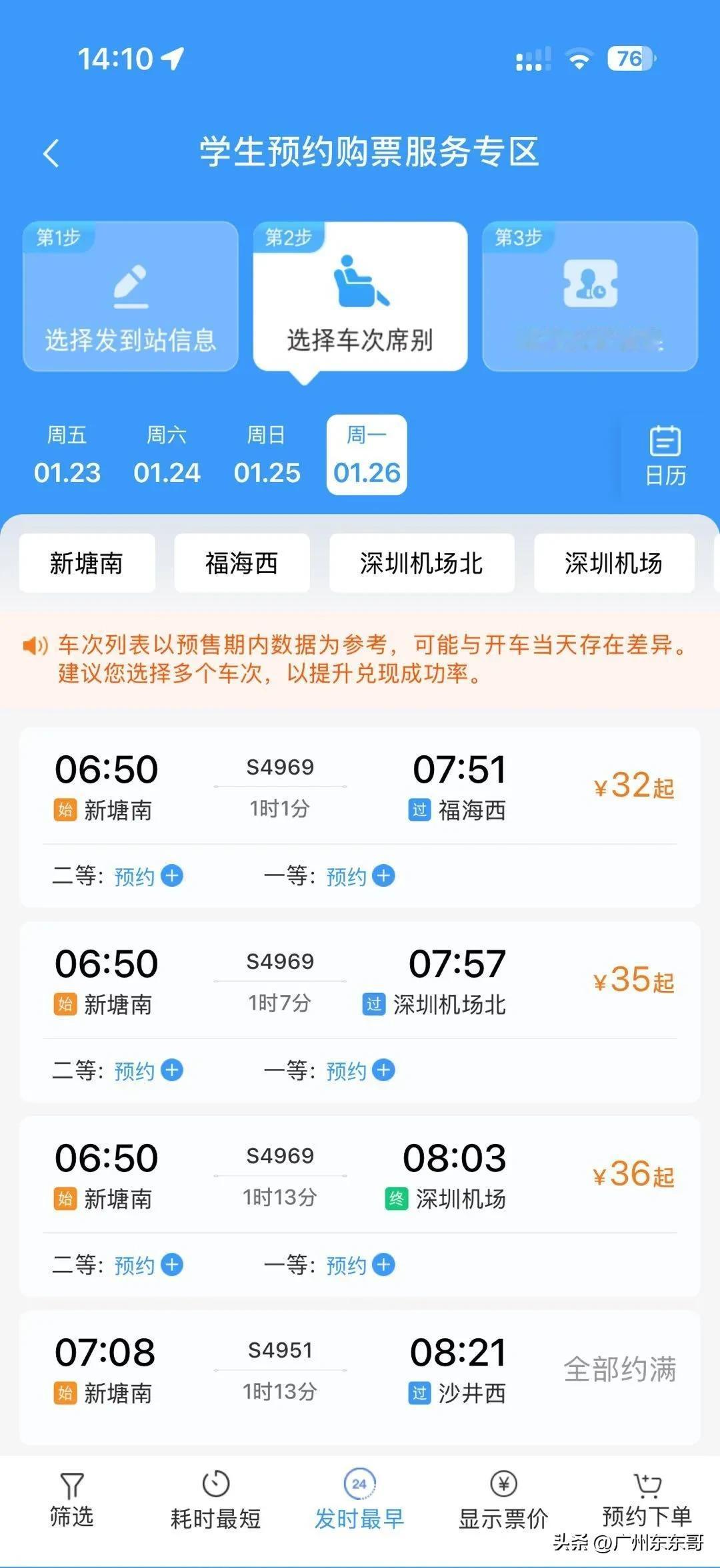 穗深城际1月19日开始调图,1月26日开始上架新的运行图,S开头列车首次亮相。 这次调图有可能是广州地铁正式接管穗深城际前的大动作,相比之前广铁运营的穗深城际,票价还是有所优惠的。 从目前来看,广州地铁接管穗深城际后,运营的重心和精力都会放在新塘南至深圳机场北,恐怕也无暇顾及新白广城际了。