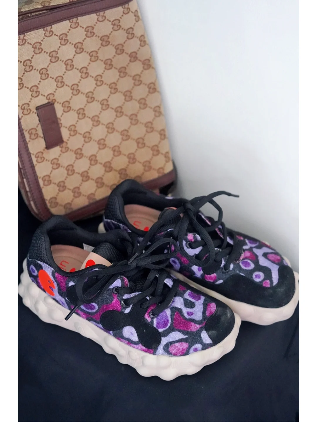 👟鞋:uin彩绘旅行鞋,新款的菲格拉斯“紫豹纹”是今年入手的第二双啦,又潮又酷,厚底显高又轻便,出门走路一点不累脚~