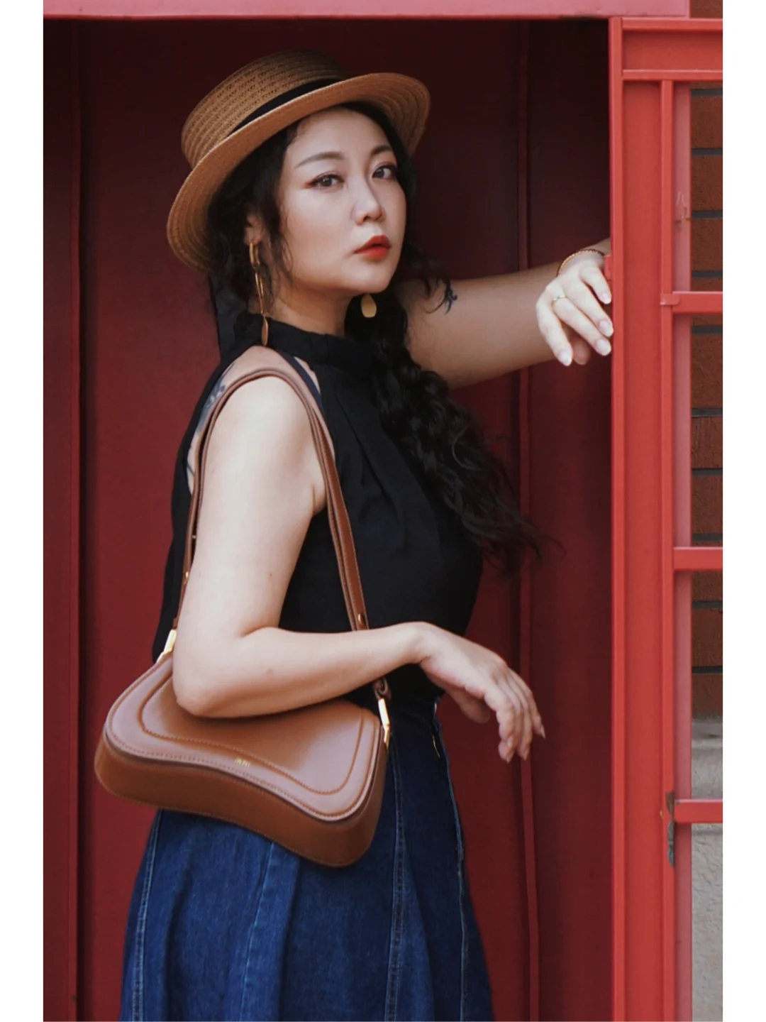 👝包:马鞍包,今年很火的包包款式,棕色配酒红色是绝配,复古气质;