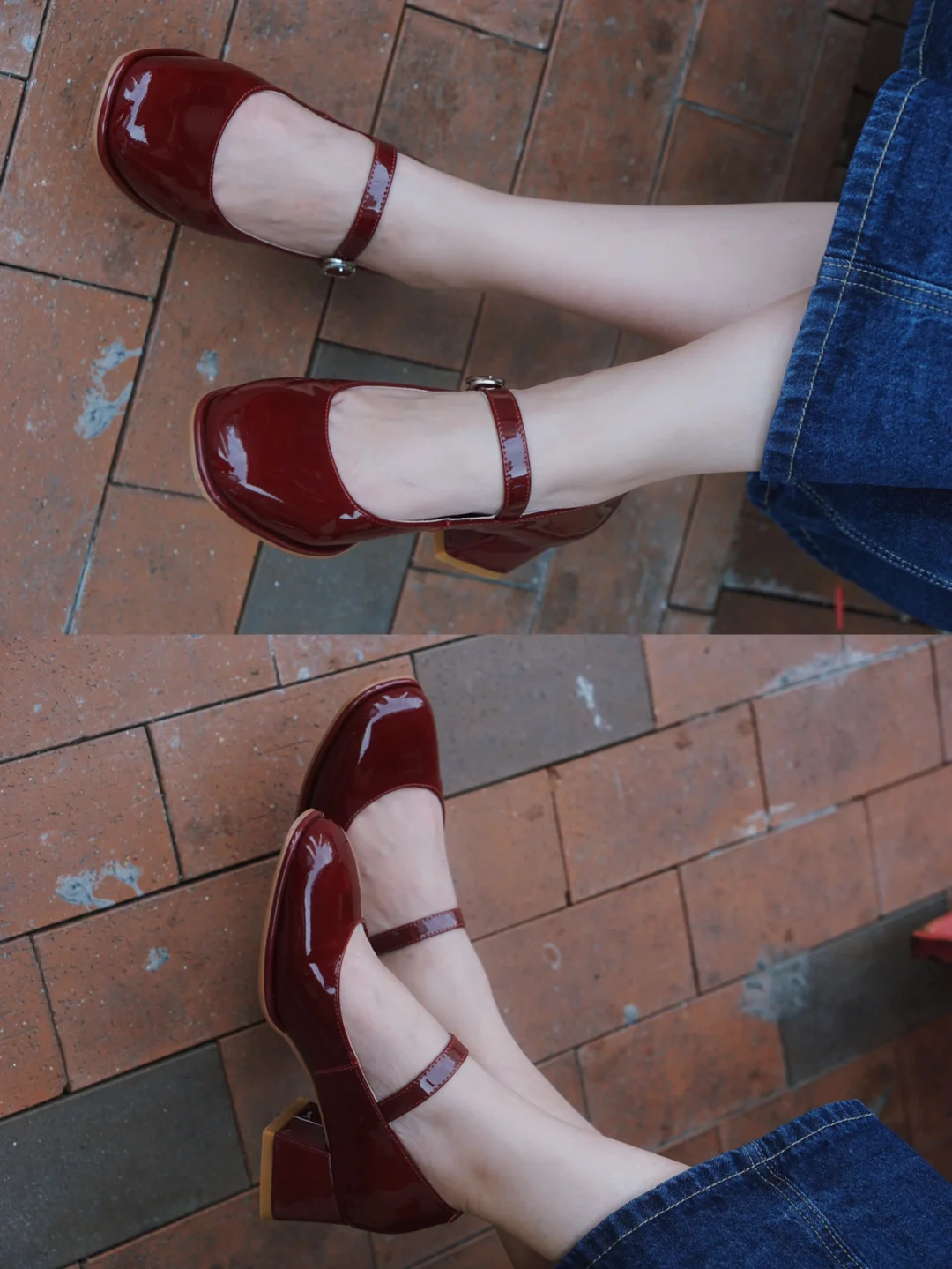 👠鞋:Bata玛丽珍鞋,千挑万选终是入手了,我觉得吧,酒红色的复古与时尚才是对玛丽珍鞋最好的诠释,5cm的方根,显腿长,走路也很舒服;