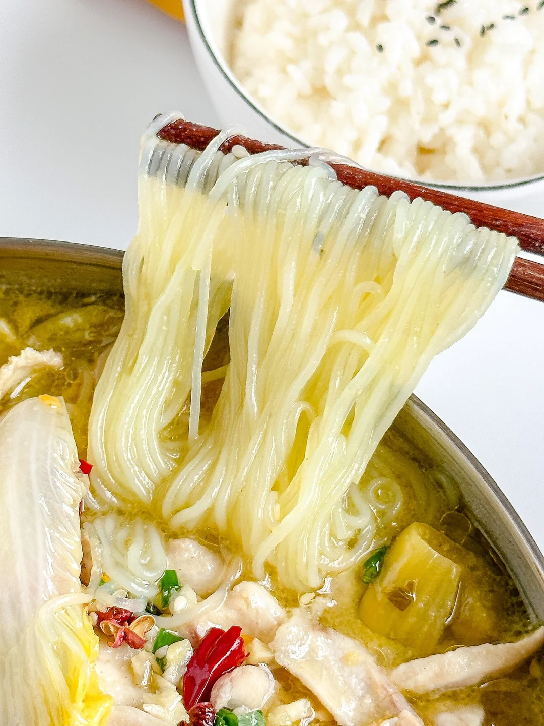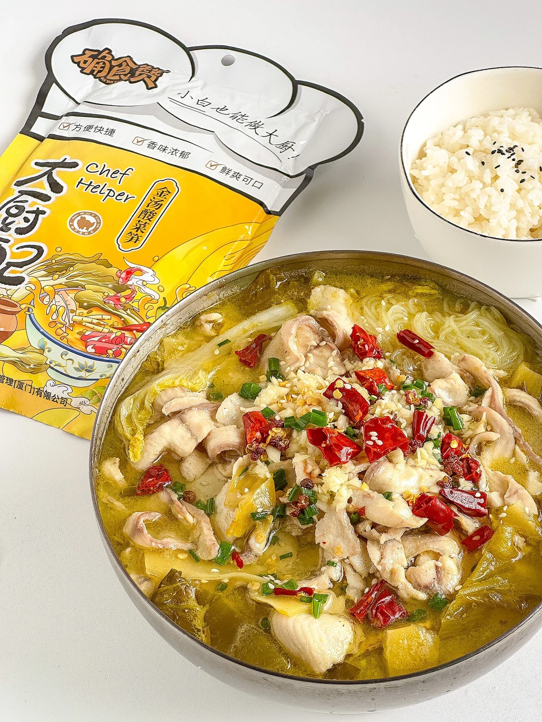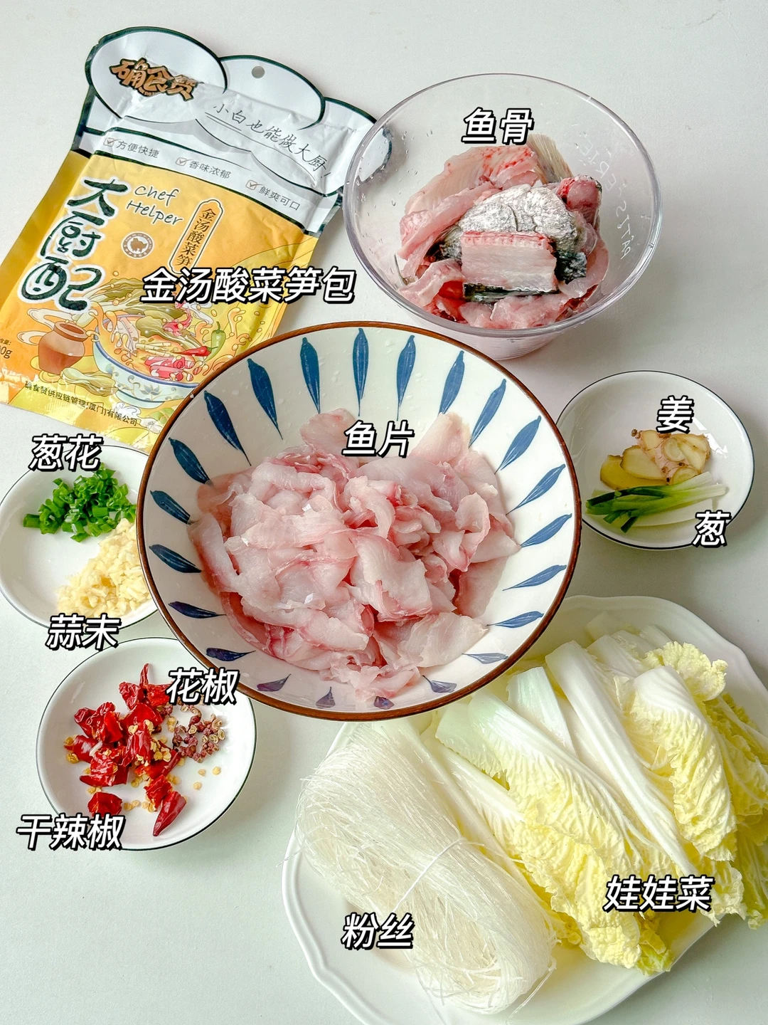 黑鱼片 娃娃菜 粉丝 葱姜蒜 花椒 辣椒 确食赞金汤酸菜笋