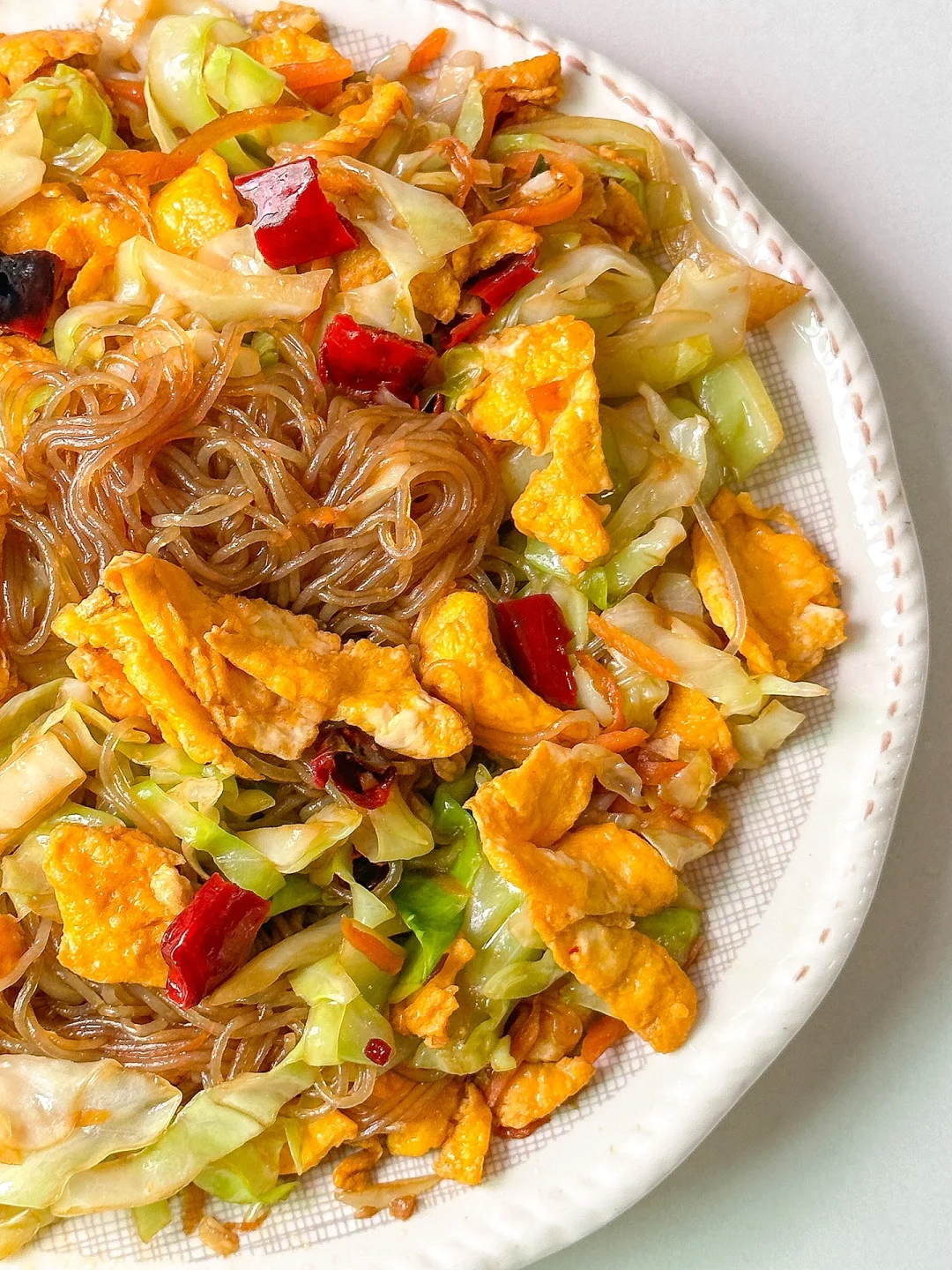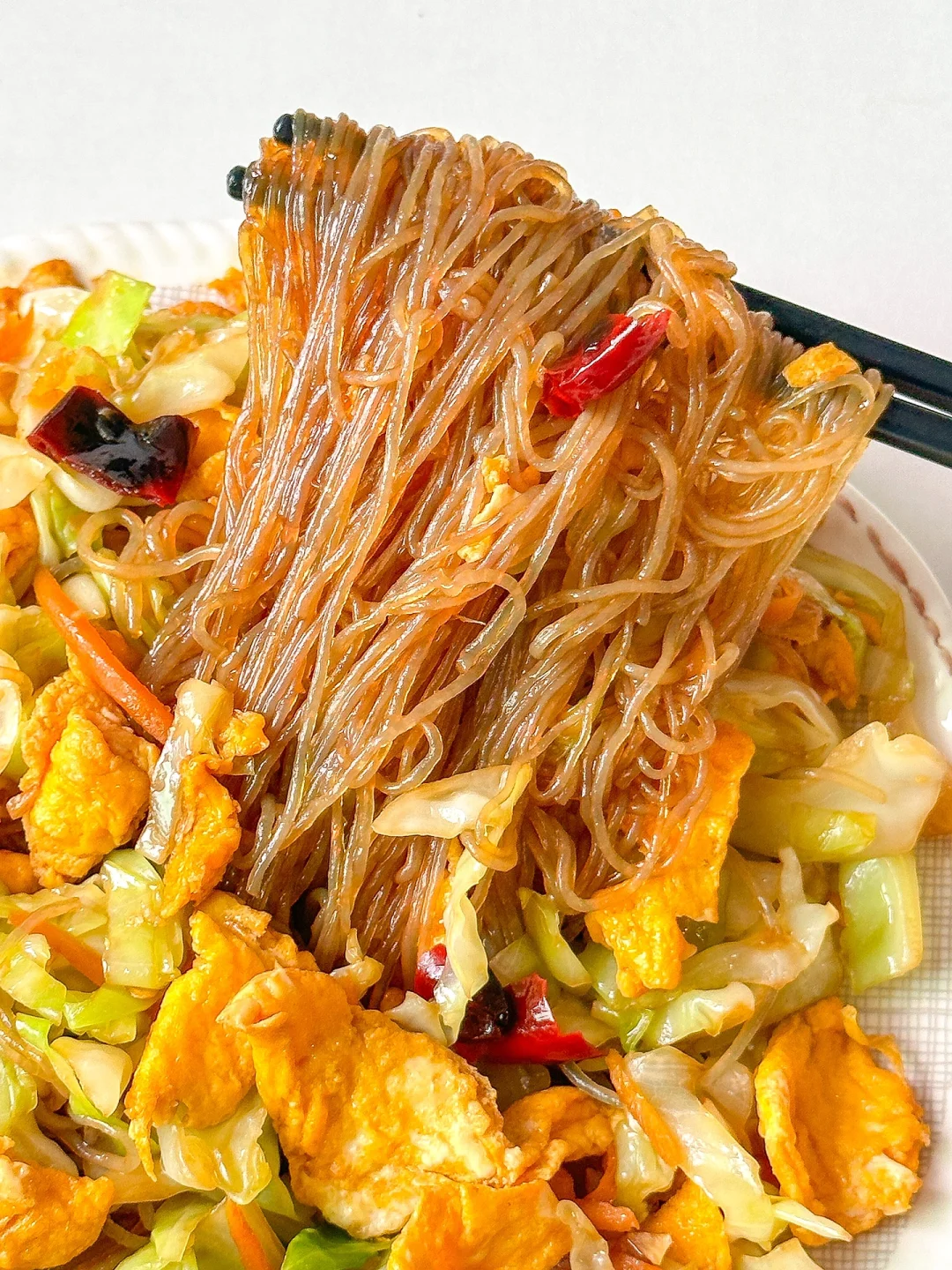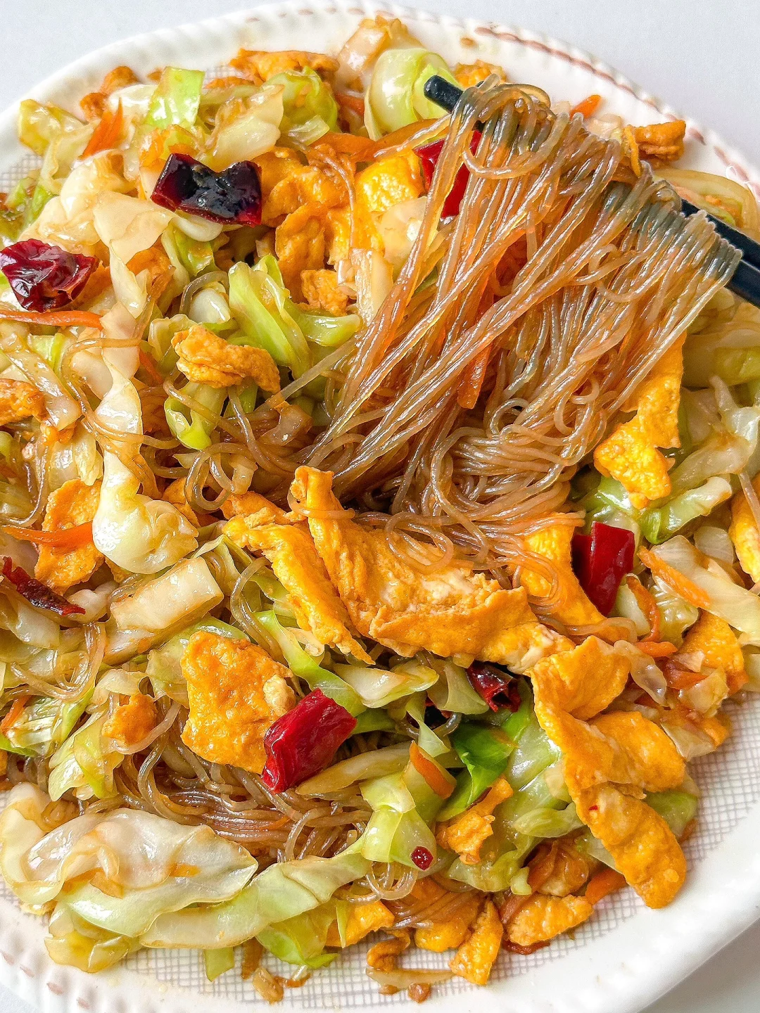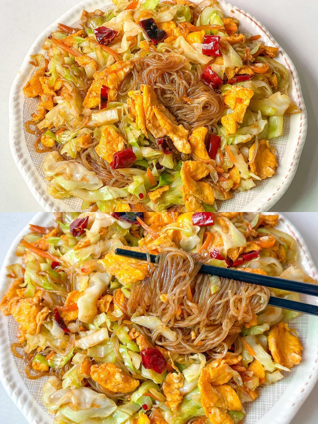 超好吃的家常菜!包菜鸡蛋炒粉丝🔥简单下饭