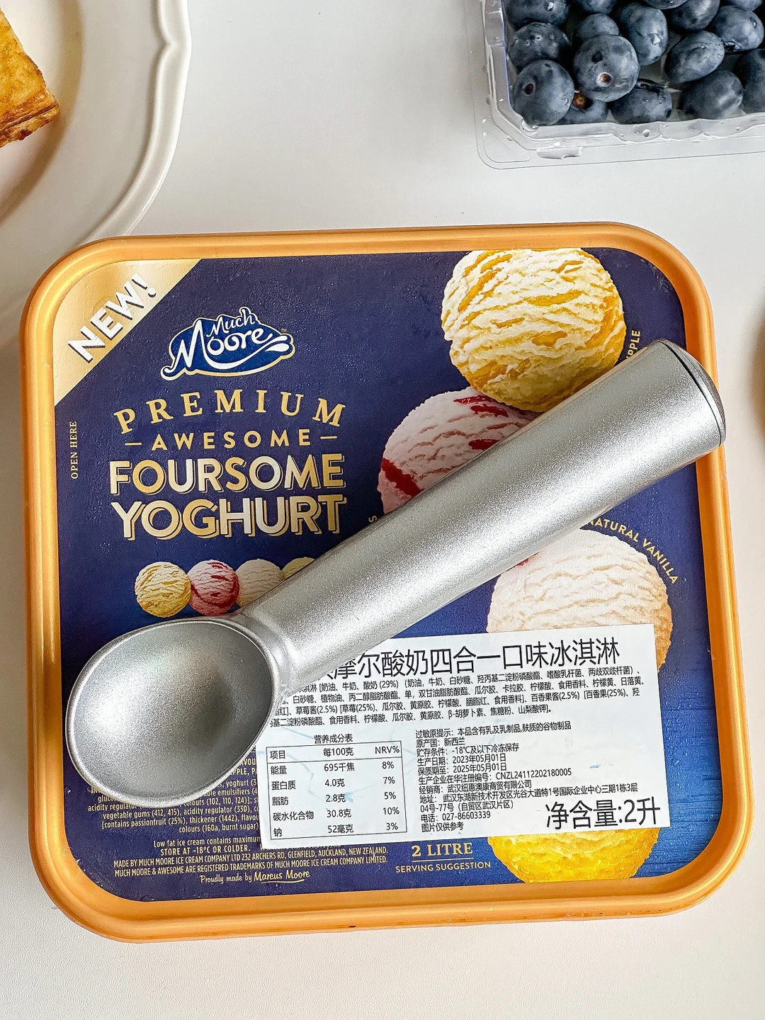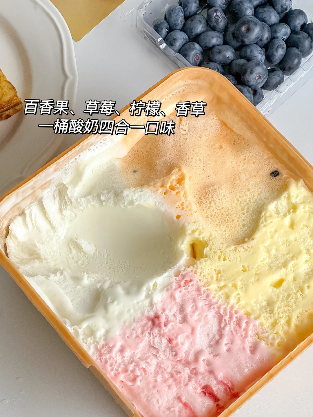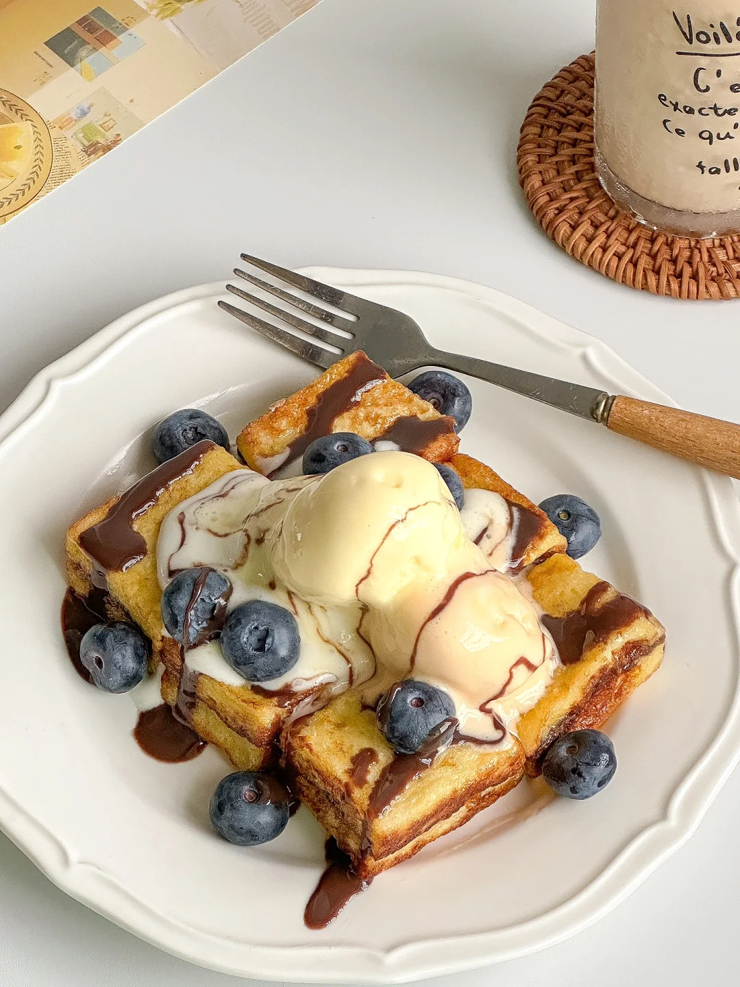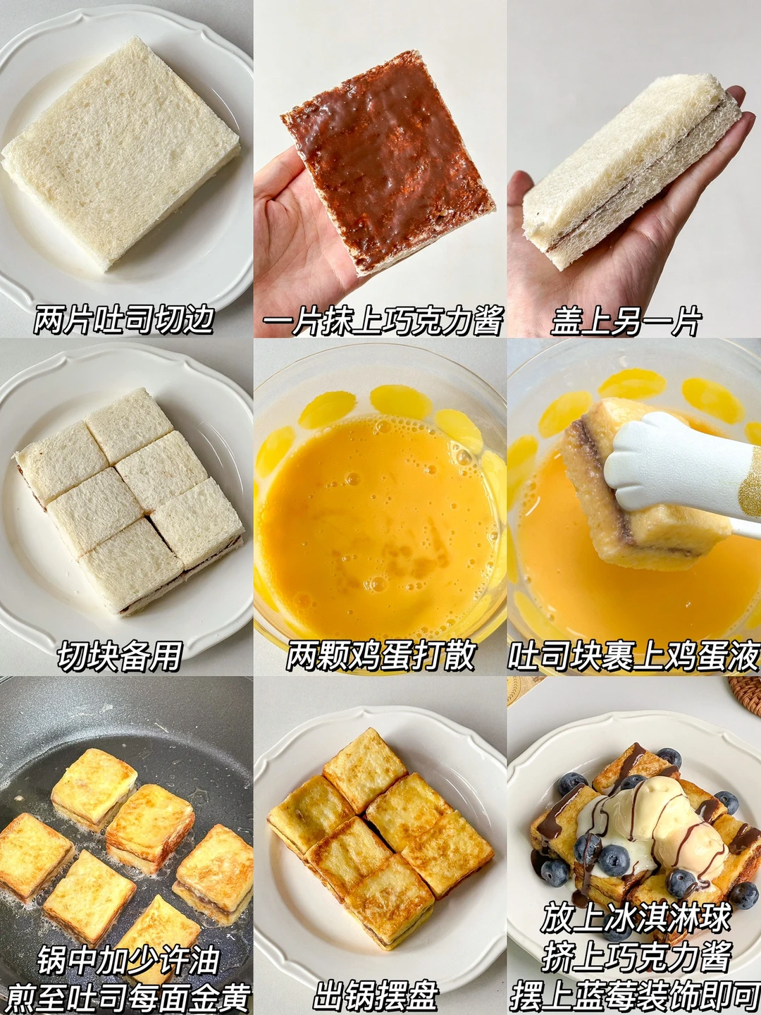西多士是我去餐厅每次都会点的!!真的吃不腻!!今天在家也复刻一下[喝奶茶R]~搭配上冰淇淋真的绝绝子😋 ㅤ 🌟准备食材🌟 吐司2片 鸡蛋2颗 蓝莓 冰激凌 巧克力酱 🌟做法🌟 1️⃣两片吐司切边,一片抹上巧克力酱,盖上另一片,切块备用 2️⃣两颗鸡蛋打散,吐司块裹上鸡蛋液,锅中加油,煎至吐司每面金黄,出锅摆盘,放上冰淇淋球,挤上巧克力酱,摆上蓝莓即可 ㅤ 煎好的面包又香又有嚼劲!一口蘸一下冰淇淋!!冷热交替真的绝了!![赞R][赞R][赞R] ㅤ 这个玛琪摩尔冰淇淋真好吃炸了!![萌萌哒R]来自新西兰的奶源~百香果、草莓、柠檬、香草酸奶四合一的口味巨好吃!!口感绝了!不添加一滴水!!入口即化!!而且热量又低!一颗冰淇凌球比一个苹果🍎还低的热量哦!! ㅤ 还有巧克力味的也巨好吃!🍫加了纯可可脂曲奇饼干!!微苦回甜!0反式脂肪酸!一盒2L装好大一桶!用大勺子挖着吃,追剧直接抱着吃幸福感满满!! ㅤ