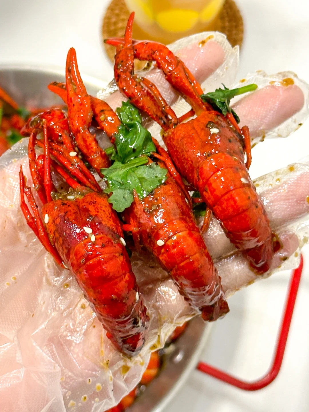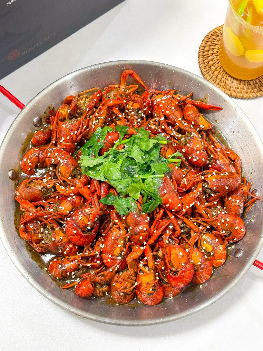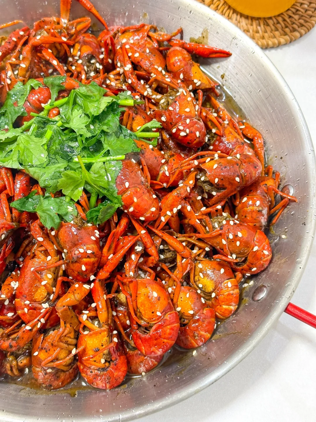 又到了小龙虾的季节了!一到龙虾季我们家是隔三差五的就烧上一份!之前烧过麻辣的、蒜蓉的、十三香的还有清蒸的!今天安排个黑椒味的!一口就上瘾了!而且做法简单0失败,分享给朋友们✌🏻 ㅤ 🌟准备食材🌟 小龙虾三斤 啤酒一瓶 葱姜蒜辣椒 香菜 调味料一包 🌟做法🌟 1️⃣小龙虾用牙刷刷干净,剪掉头部去掉沙包,尾部中间扯断,抽出虾线 2️⃣锅中加油,油热加入葱段、姜片、蒜片和辣椒炒香,倒入小龙虾翻炒至变红,加入半包调味料包 3️⃣加入一罐啤酒和水没过小龙虾,大火煮沸转小火焖煮20分钟左右 4️⃣倒入剩余的半包调料和黑胡椒碎,继续焖煮10分钟收汁撒上白芝麻香菜点缀即可 ㅤ 真的巨简单!做好的小龙虾超入味的,黑椒味带点微辣,真的好吃到吮指头!!喜欢加土豆黄瓜等配菜的也可以加,汤汁还可以拿来拌面条也是绝了vo~ ㅤ 一包料刚好做三斤小龙虾,真的要试试啊!手残党也可以烧出好吃的小龙虾!!完全不输外面饭店!还有冬阴功味的,等下一波小龙虾再去试试!! ㅤ