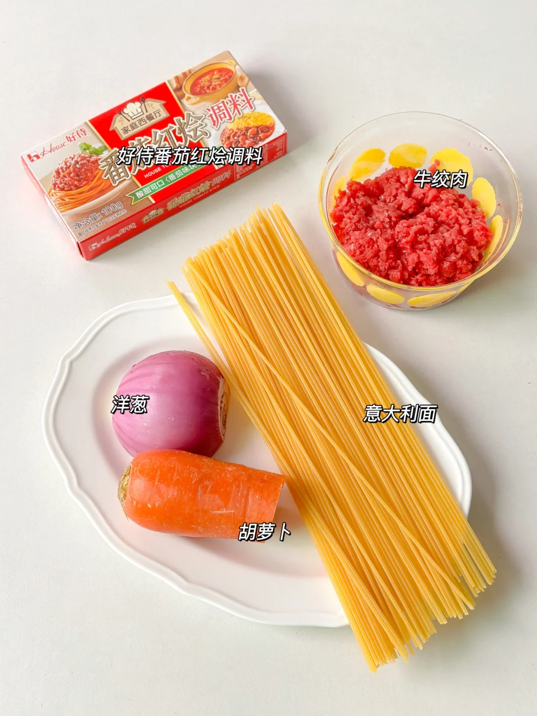 牛绞肉 洋葱 胡萝卜 意大利面 好侍番茄红烩调料