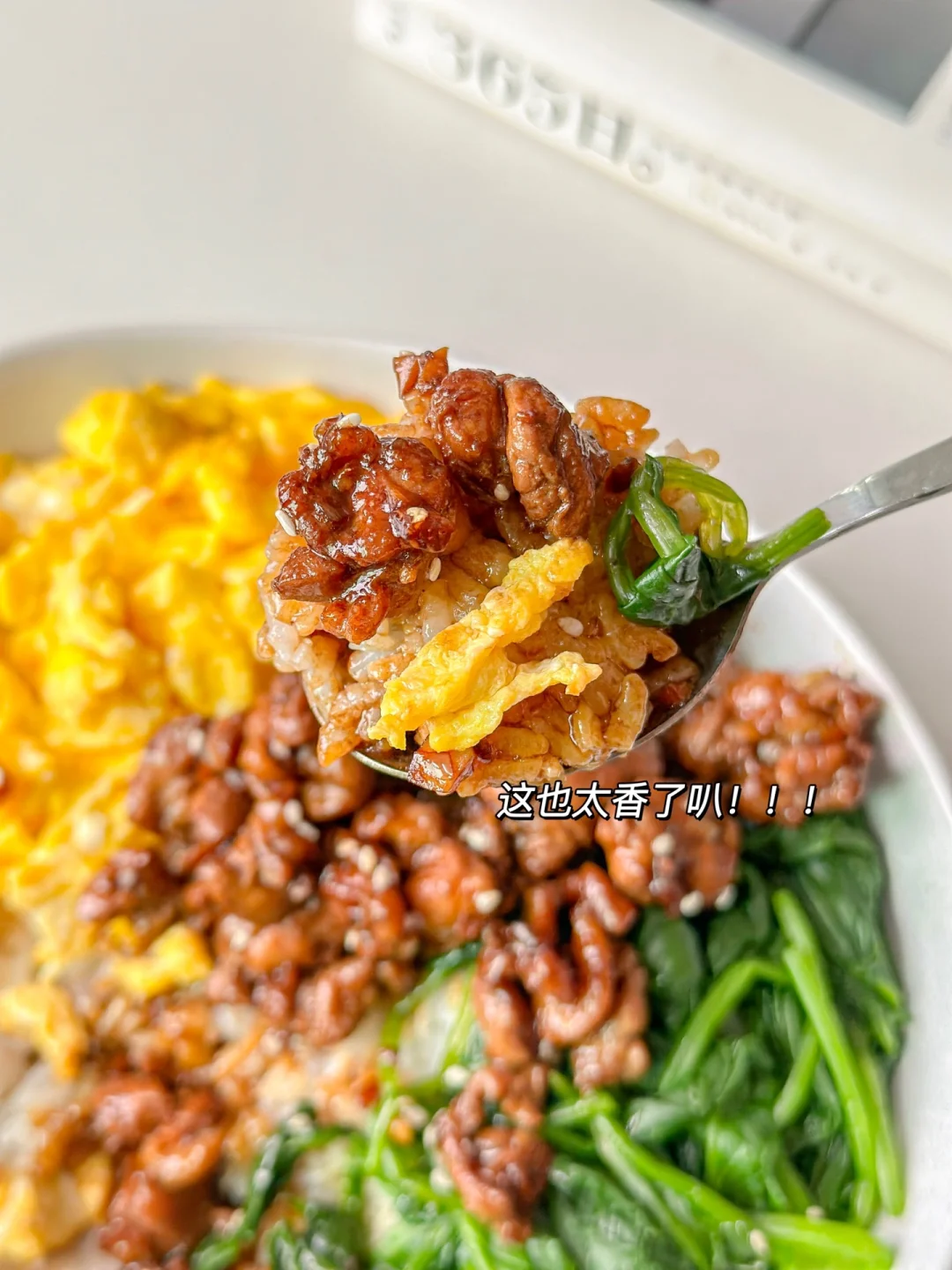 9命!这个盖饭真的吼吼吃!低脂低卡又有营养有美味真的好绝!爽口的菠菜配上滑嫩的肉和鸡蛋!真的吃不够🤗