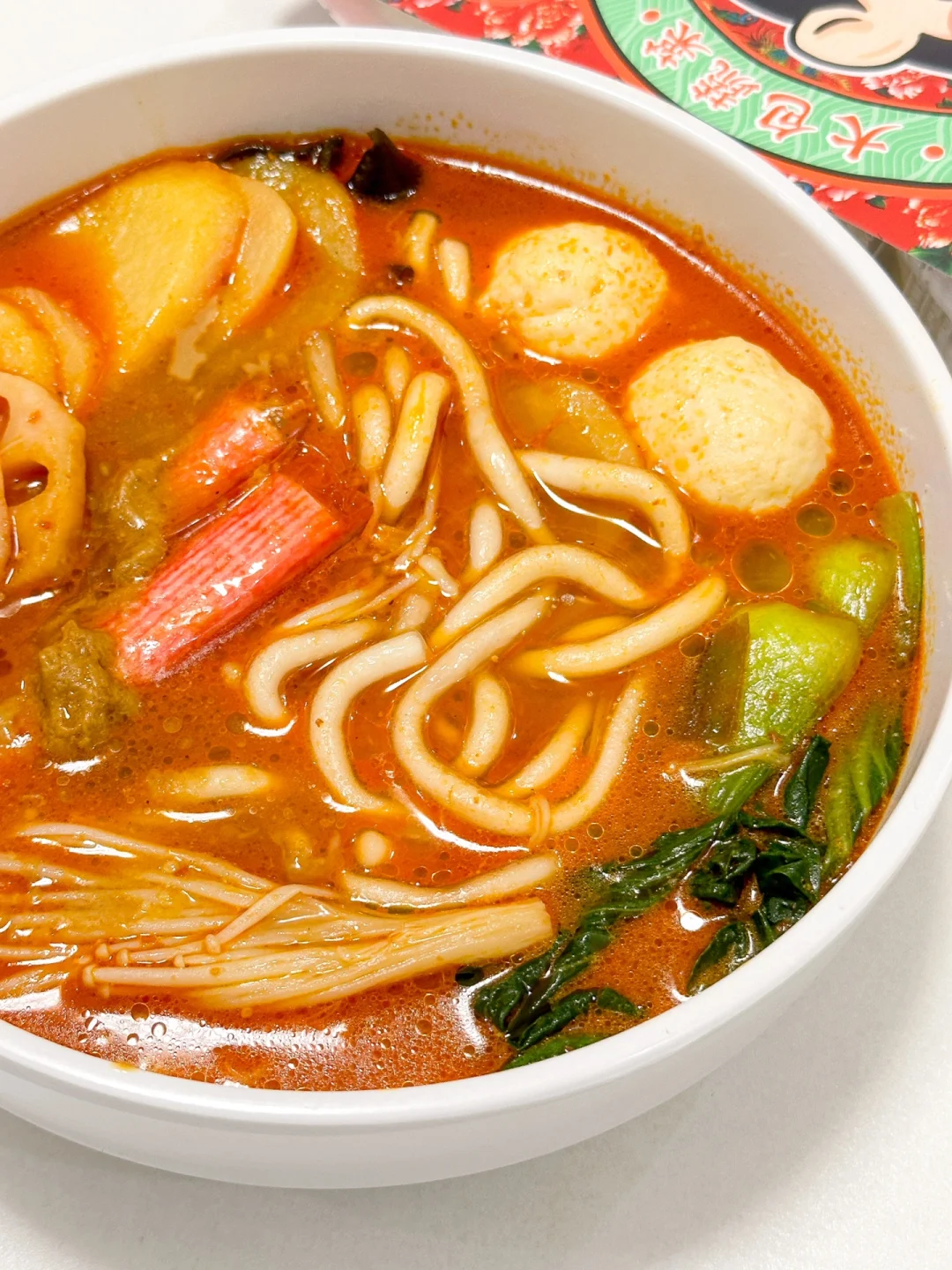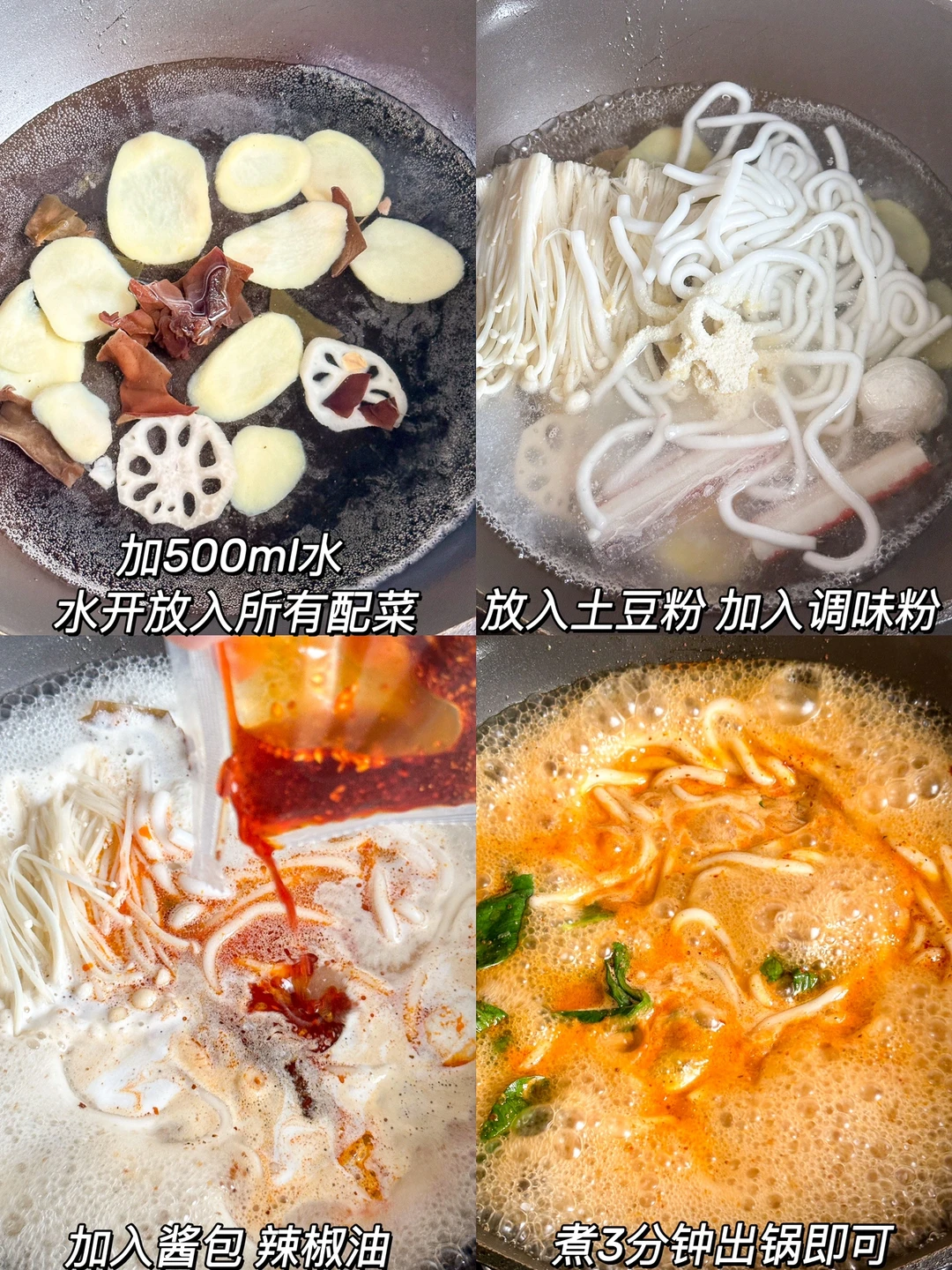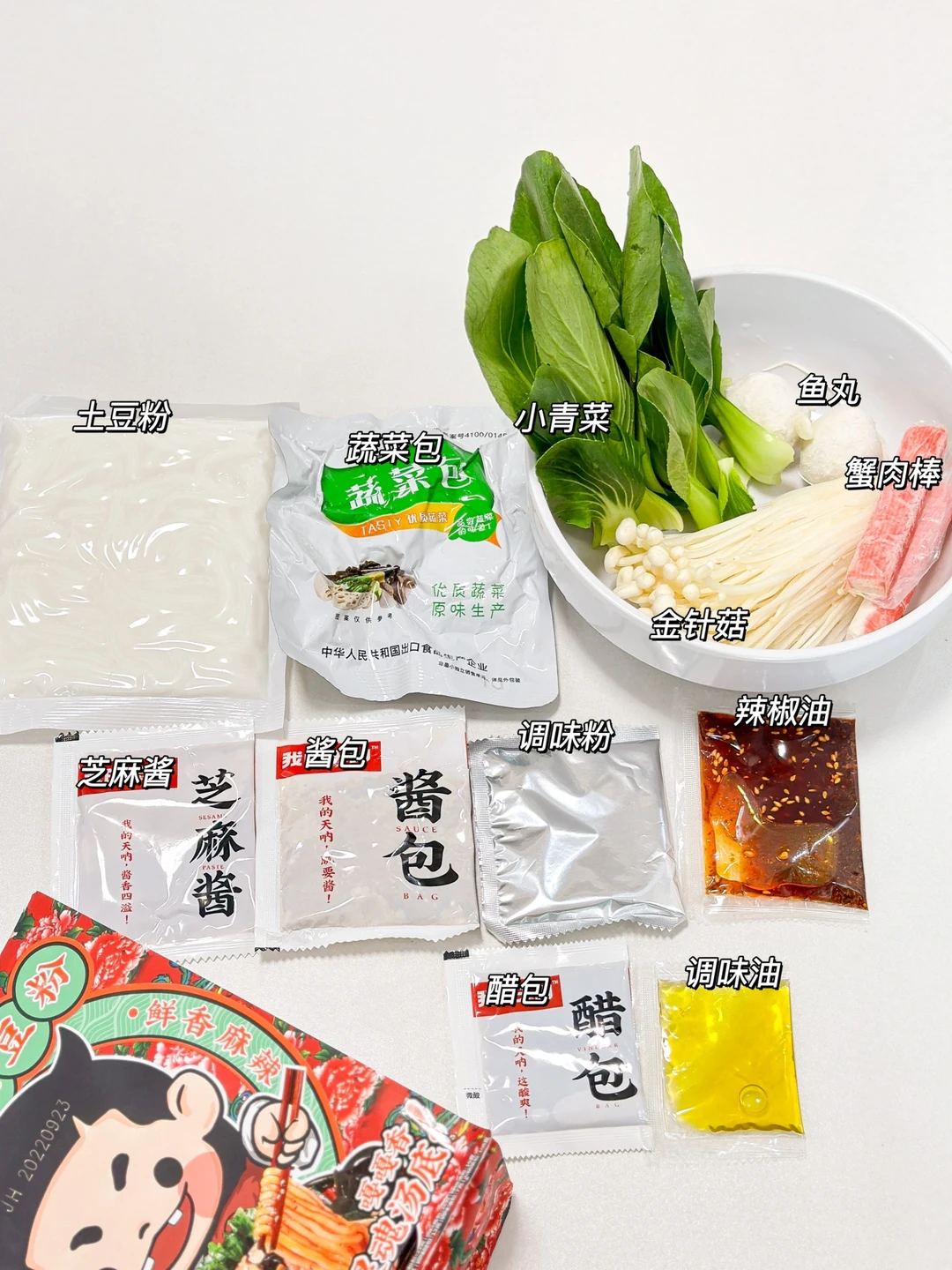 自从吃了它!我们家外麦的次数都少了! 平时我经常点家附近的麻辣烫吃的! 最近每天夜宵都是它!! 这就来分享一下~我的天呐东北麻辣烫土豆粉! 料包很多足足有7包呢! 蔬菜包辣椒包酱包还有黏糊的花生芝麻酱!!! 调味粉里还有全脂奶粉!omg! 牛油加上奶香!再加上黏糊的芝麻酱! 不用我说了!汤底鲜美又浓郁! 粉还是0脂的湿粉!贼啦Q弹!吸满了汤汁! 又香又辣!黏黏糊糊的!一嗦一个上头! 包装还很东北很Q!哈哈哈哈 煮3分钟就ok了!饿了马上就可以吃到麻辣烫的感觉真好!爱吃麻辣烫的姐妹们快🐛