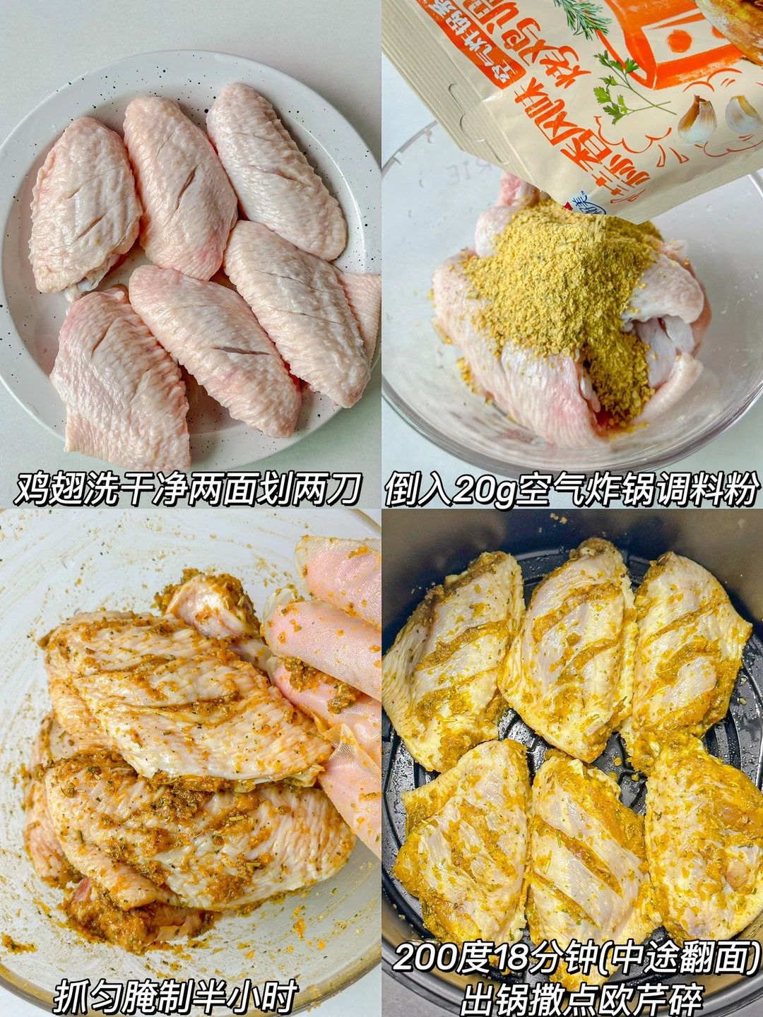 2️⃣倒入20g空气炸锅调料粉,抓匀腌制半小时