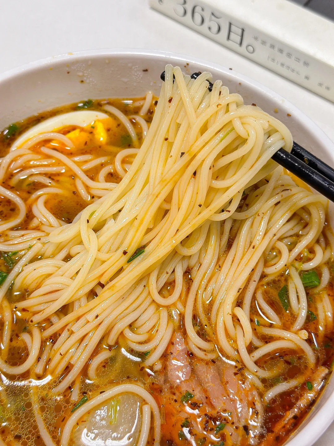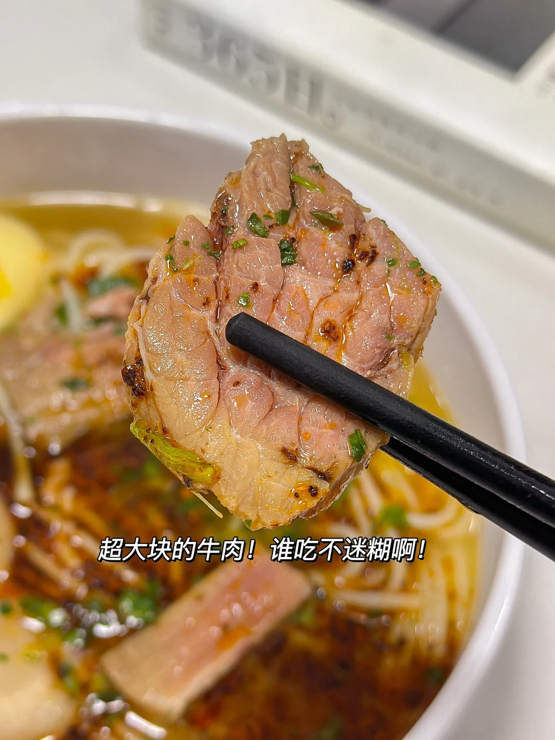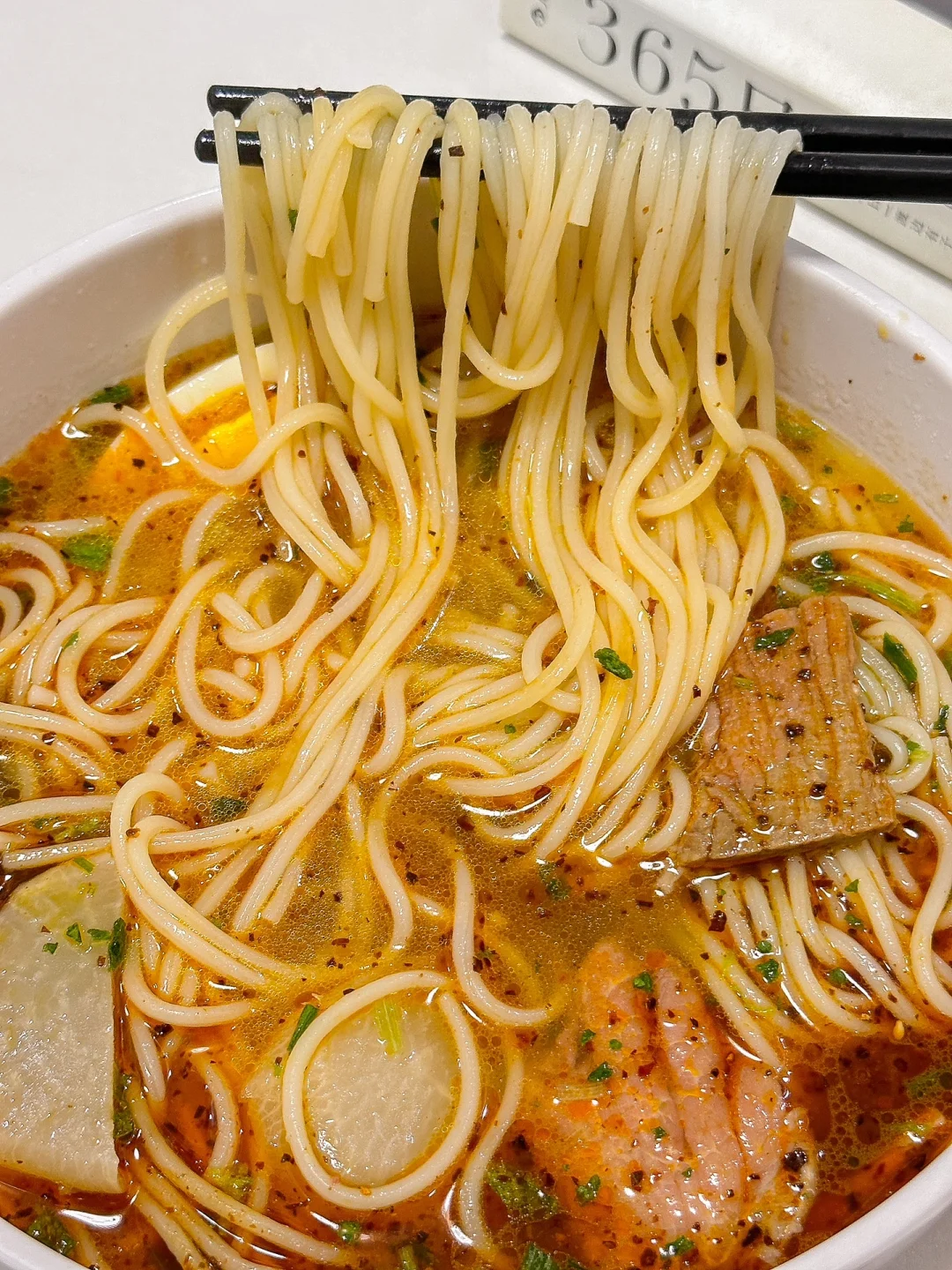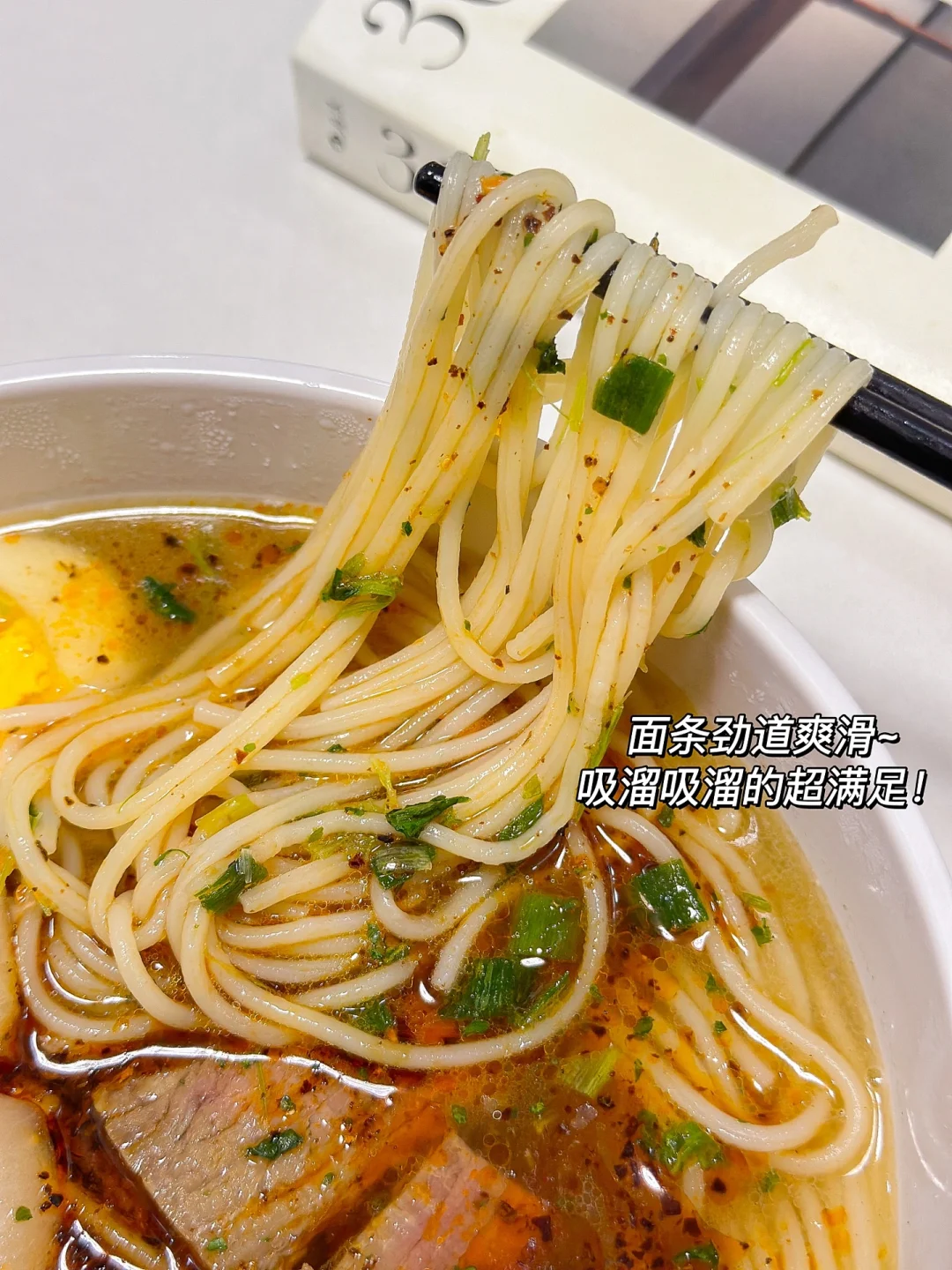 每一包都有3-4片大牛肉片哦!吃起来可得劲!汤鲜味美!加了辣椒油巨香!面也劲道!